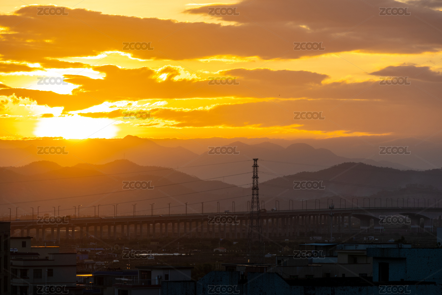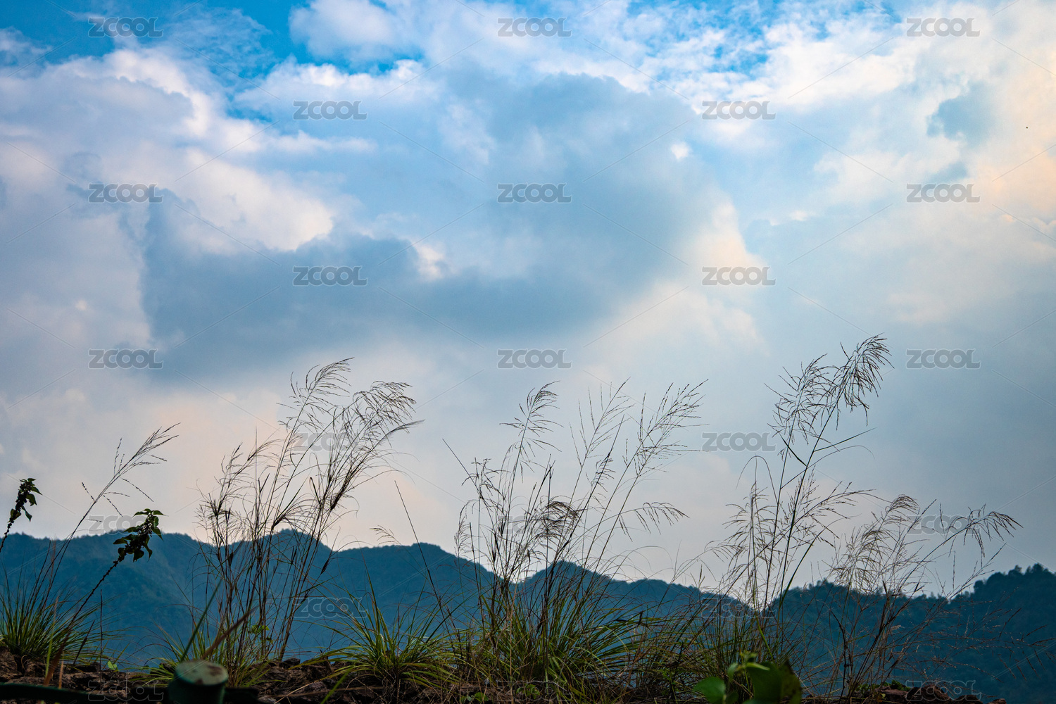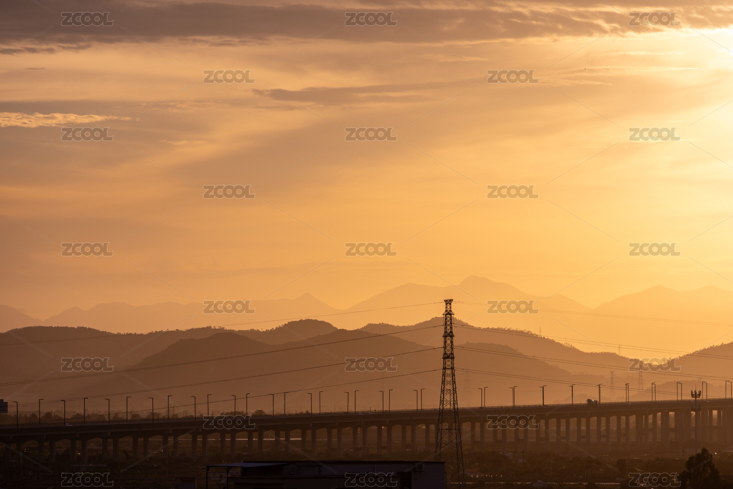 中国四川甘孜藏族自治高原暮色下的远山云海