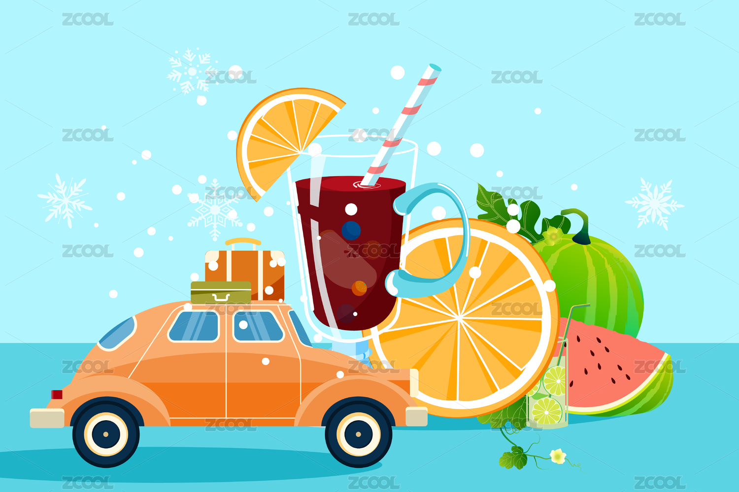 夏天旅行插画矢量图