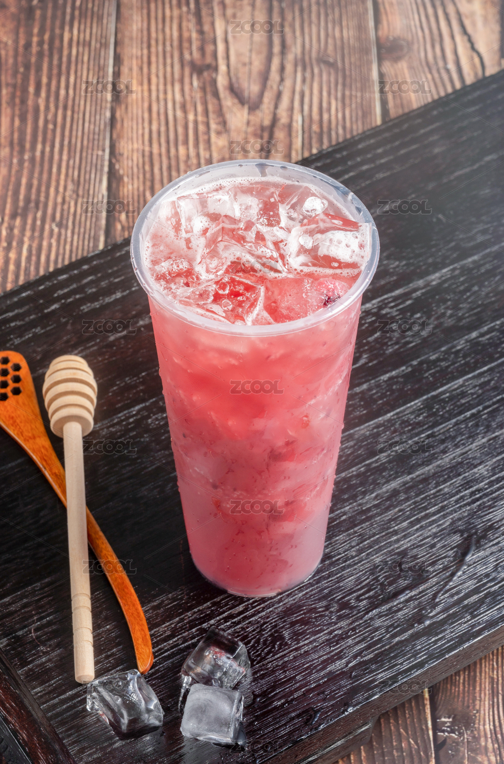 杯子里的冷饮饮料饮品草莓果汁饮品