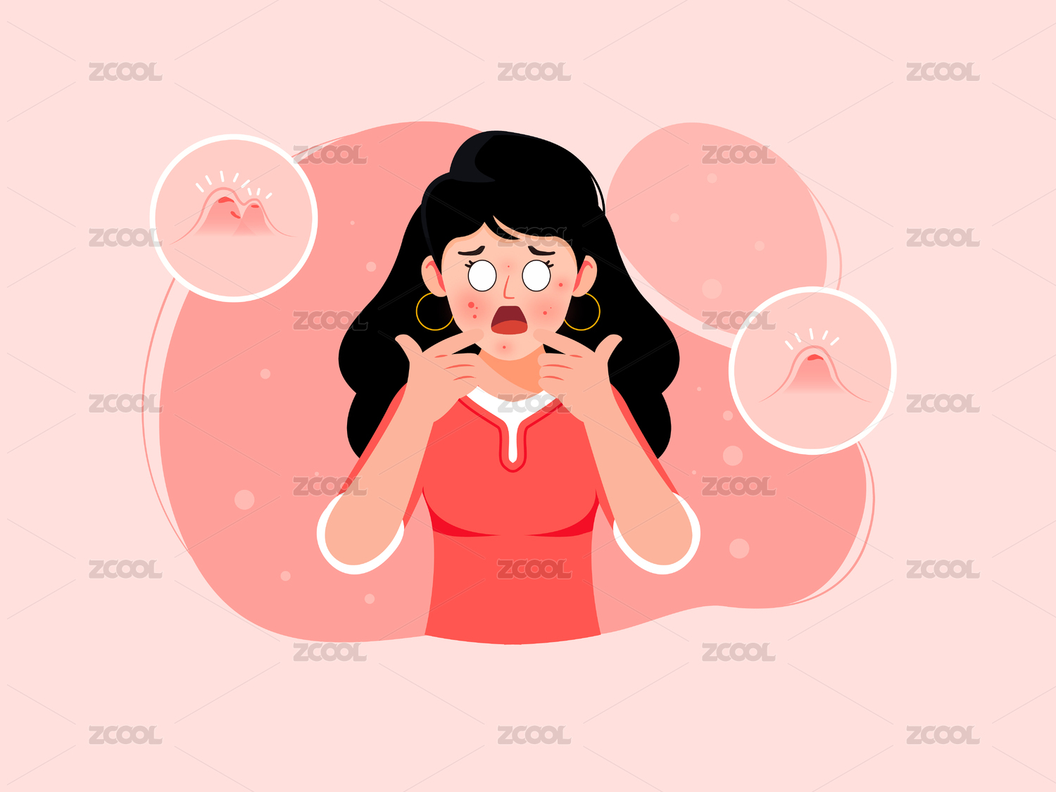 一个女生正在挤痘痘矢量扁平插画