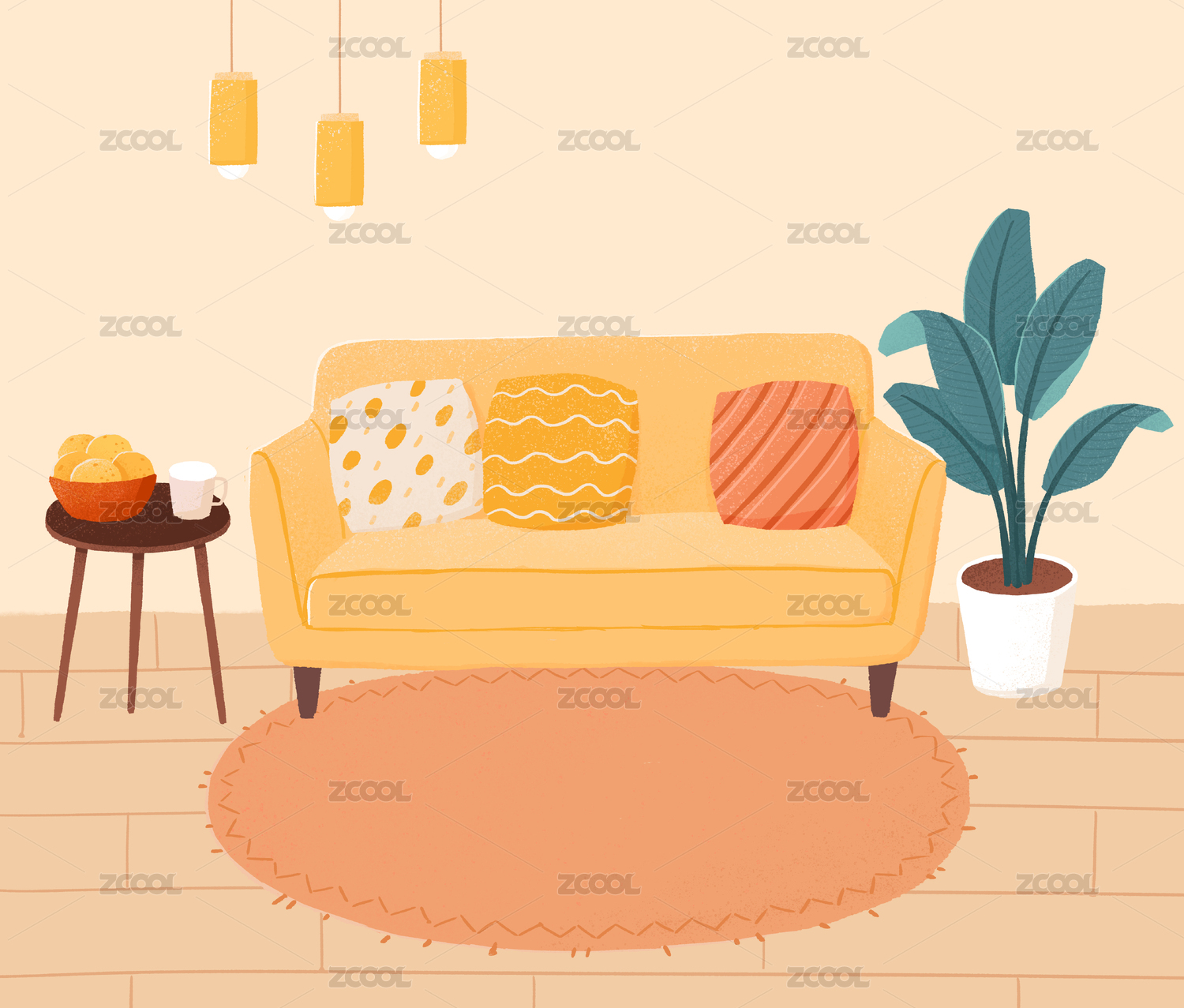 客厅室内场景插画
