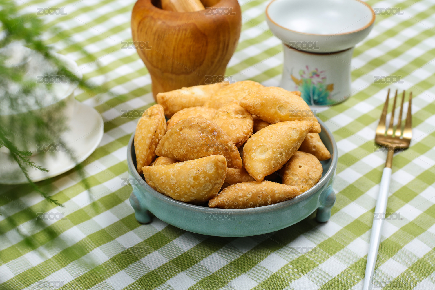 一盘放在桌子上的广东潮汕小吃油炸粿