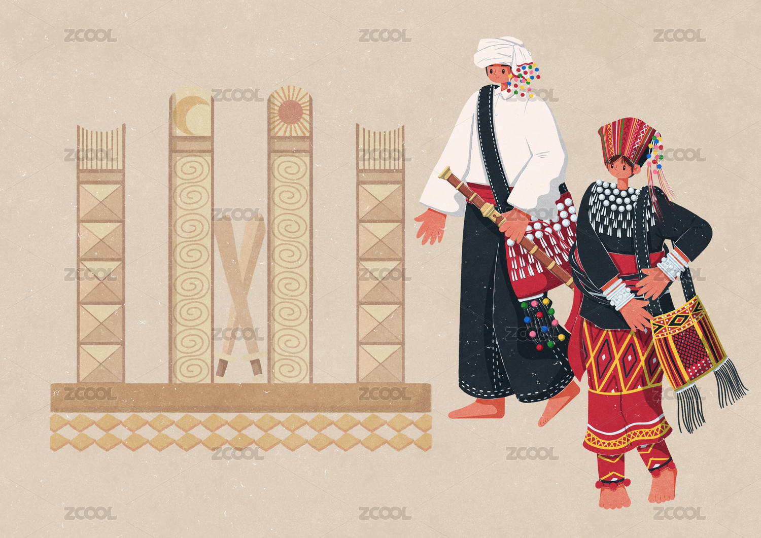 中国五十六个民族景颇族少女盛装女性服饰插画