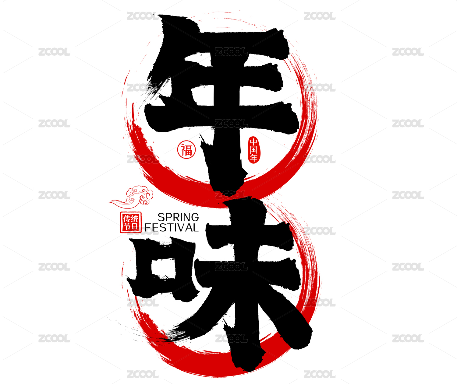 年味水墨中国风矢量毛笔字