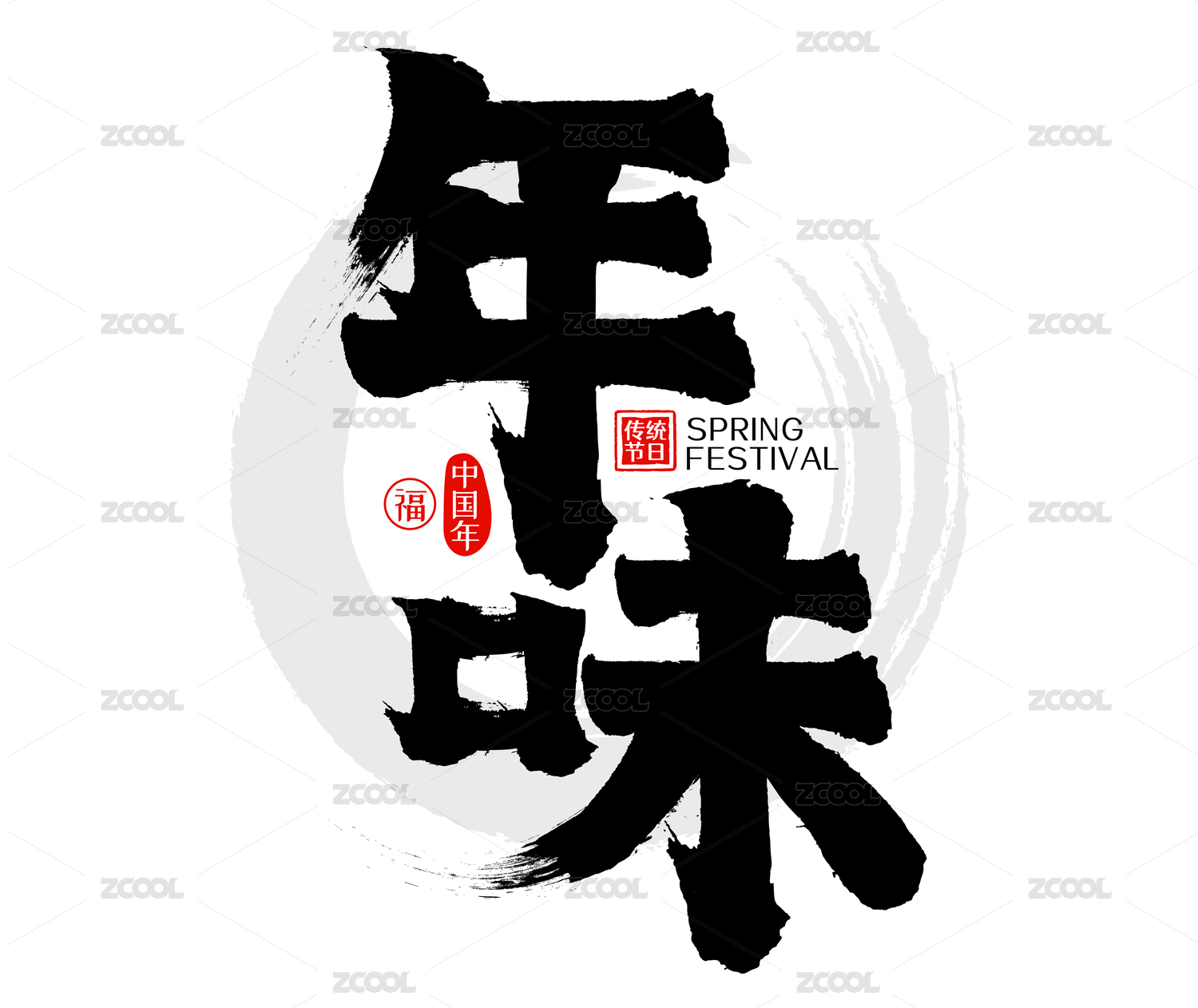 年味水墨中国风矢量书法字