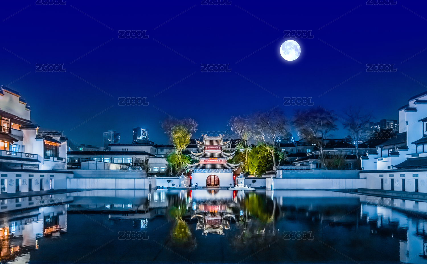 江苏省南京市夜晚月亮光照科举博物馆建筑