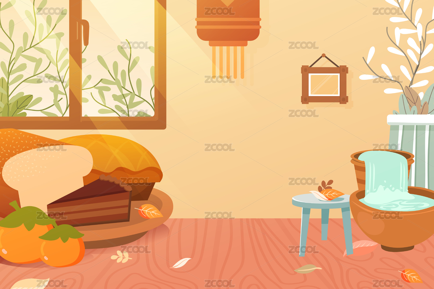 卡通手绘简约装饰餐厅餐桌餐椅插画