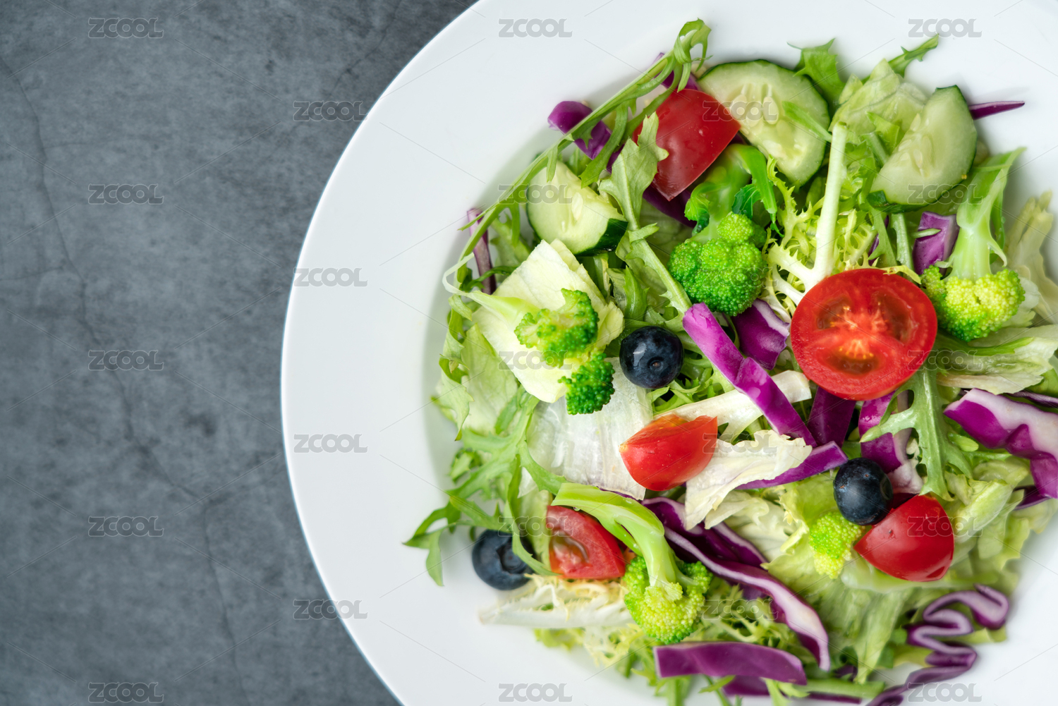 一盘美味健康的蔬菜沙拉放在灰色水泥地上