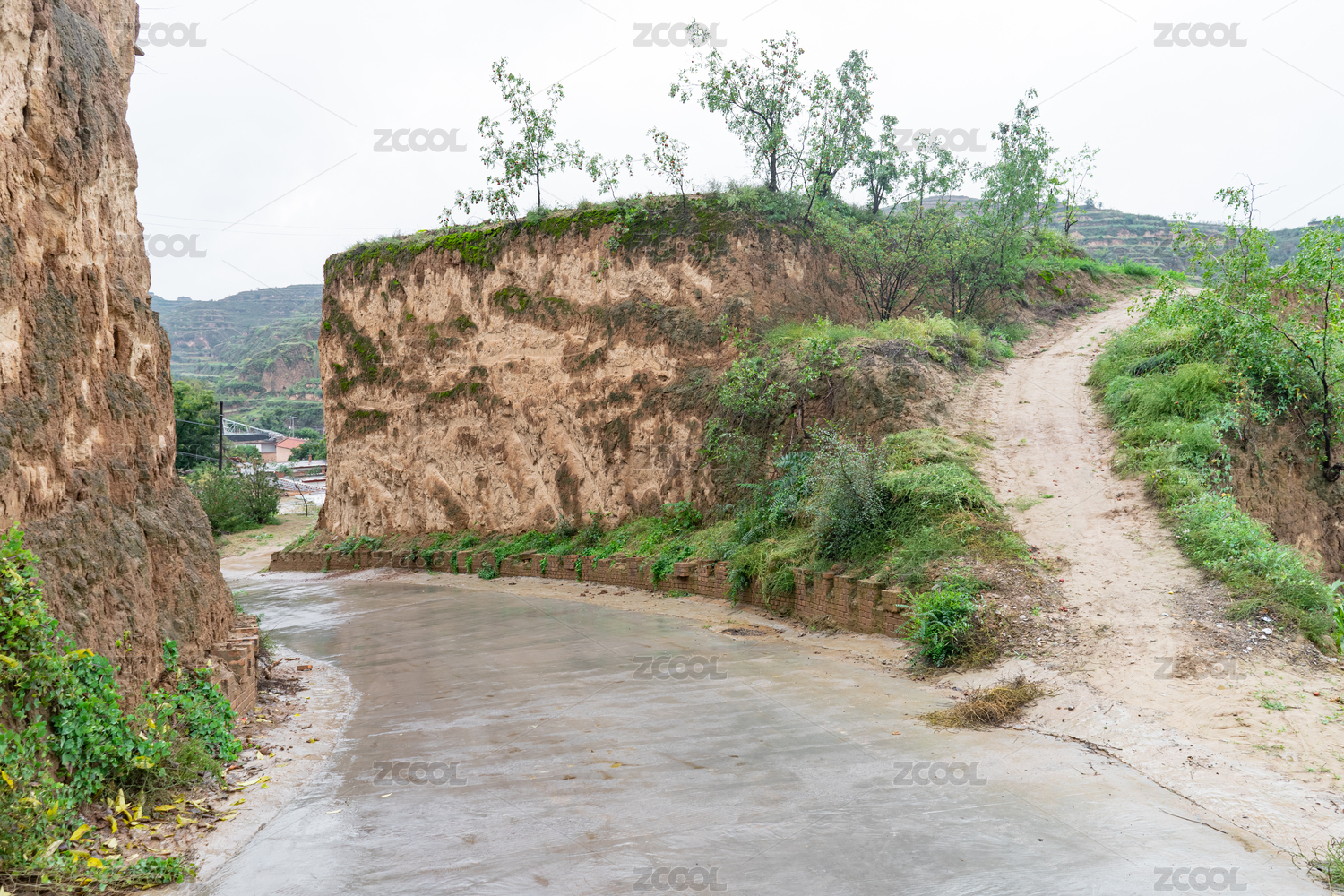 西北黄土高坡乡村风格房屋建筑,水泥地乡村