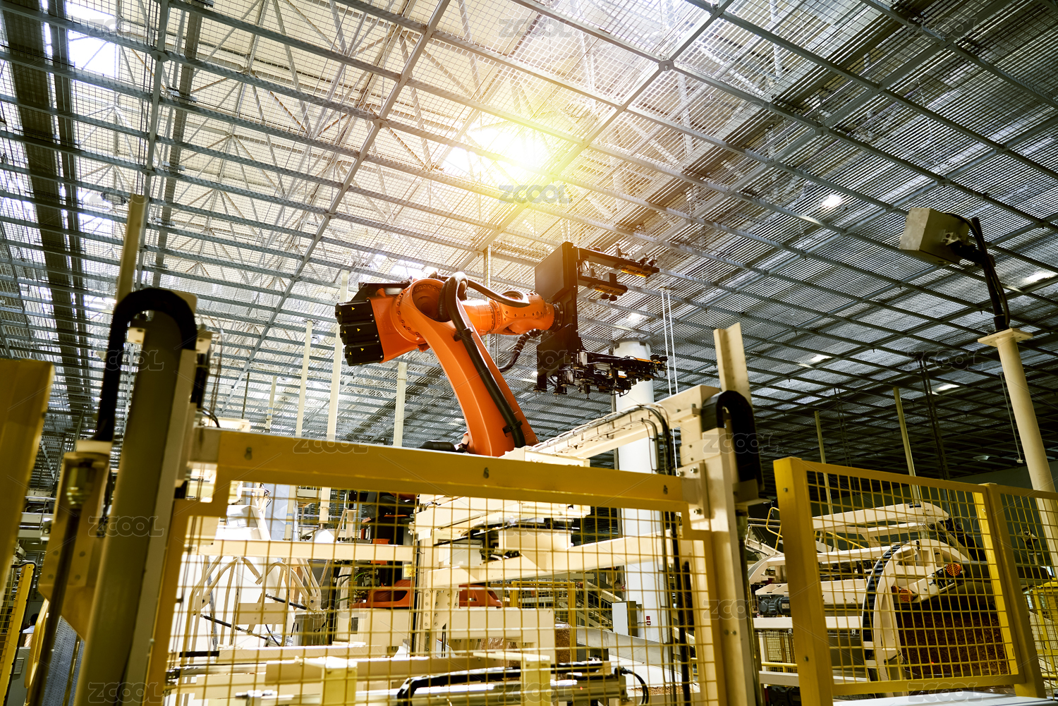 大型工厂的自动化 流水线上的机械臂正在工