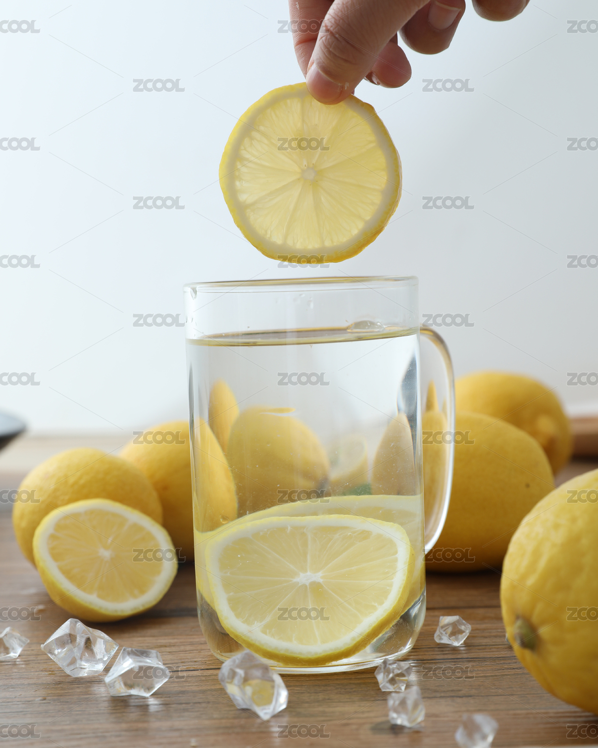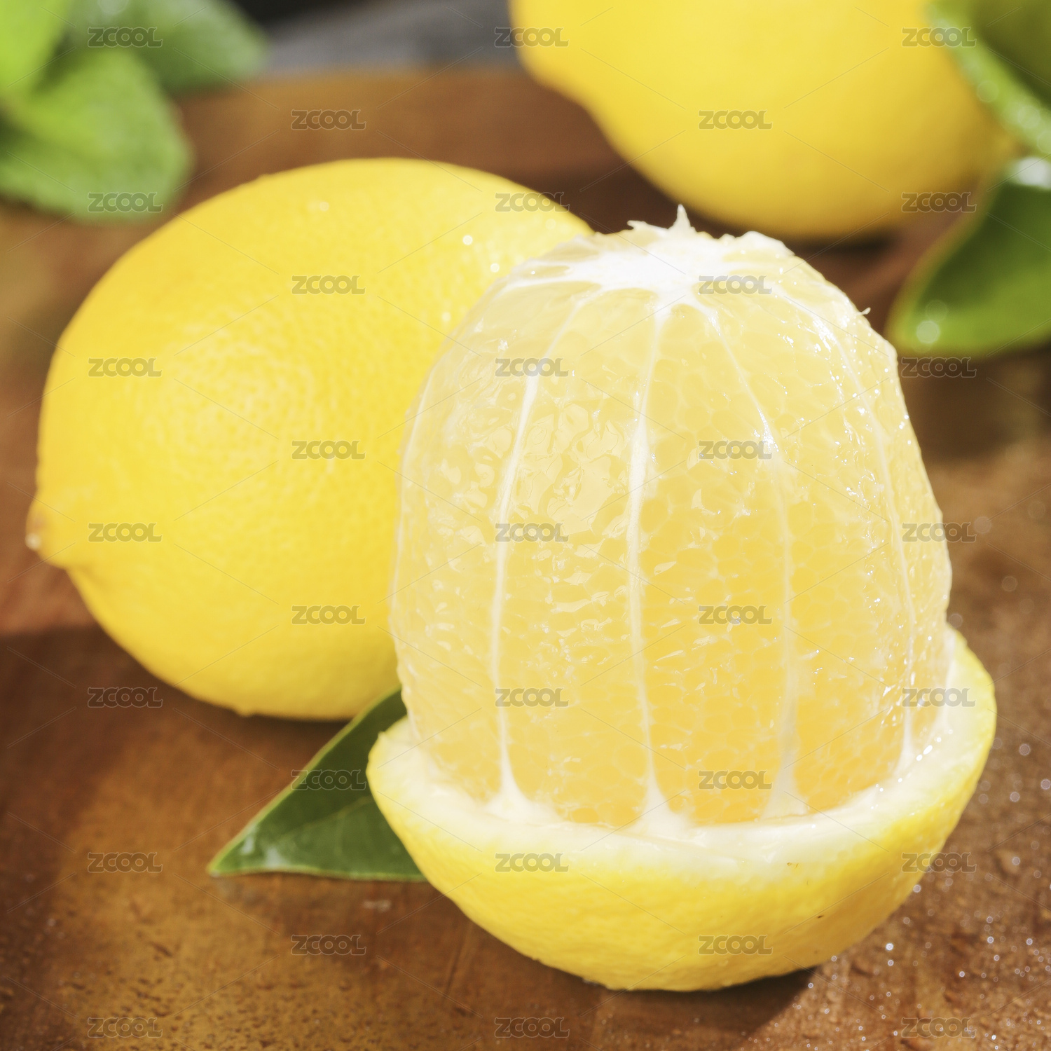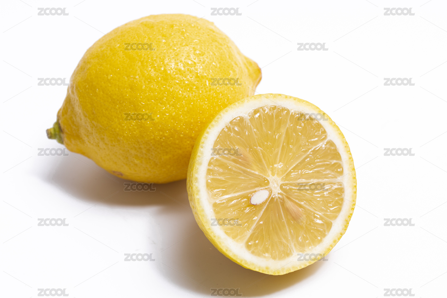 白底上放着一堆四川安岳黄柠檬和切片柠檬