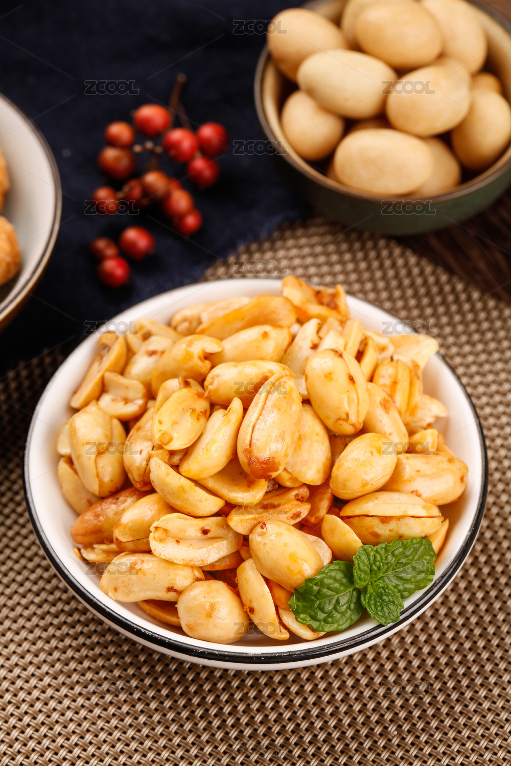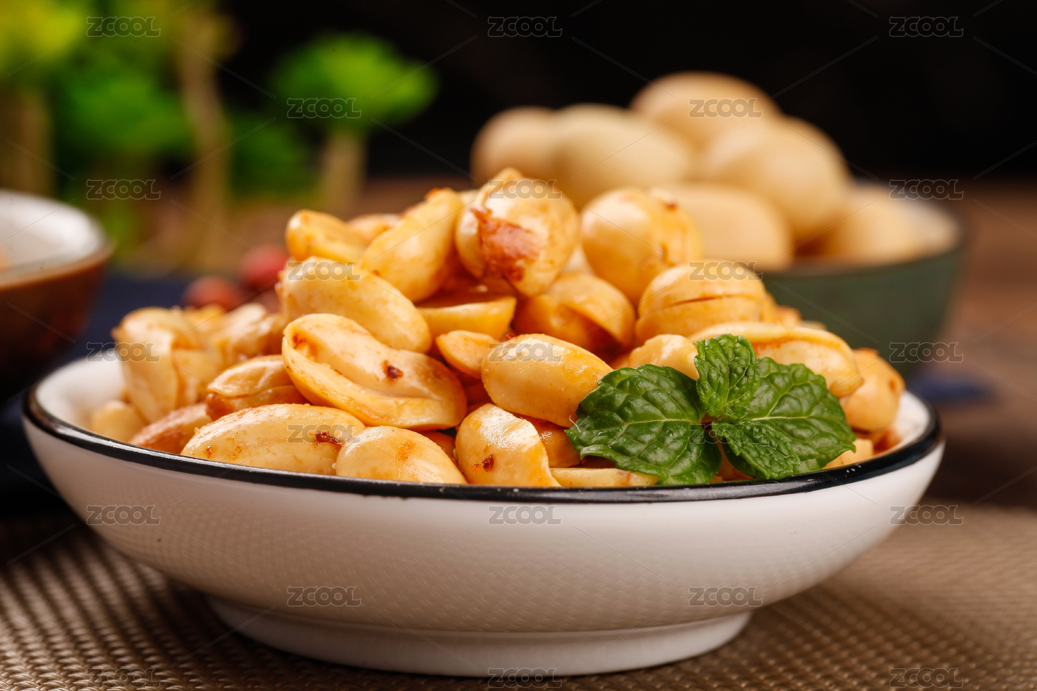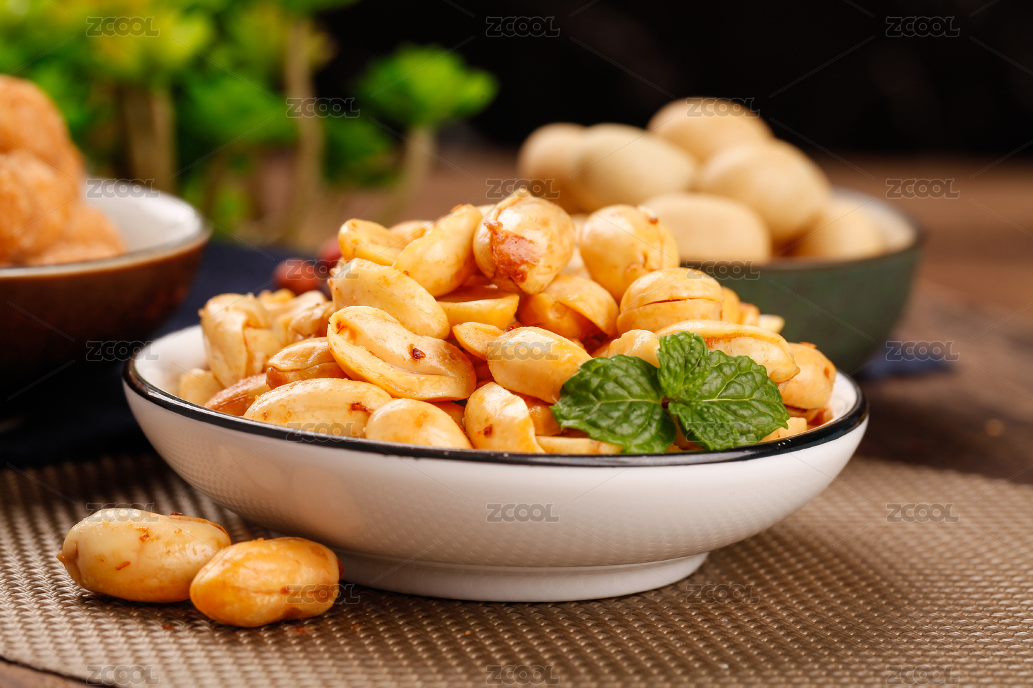 桌面上的盘子里的美味可口的酒鬼花生