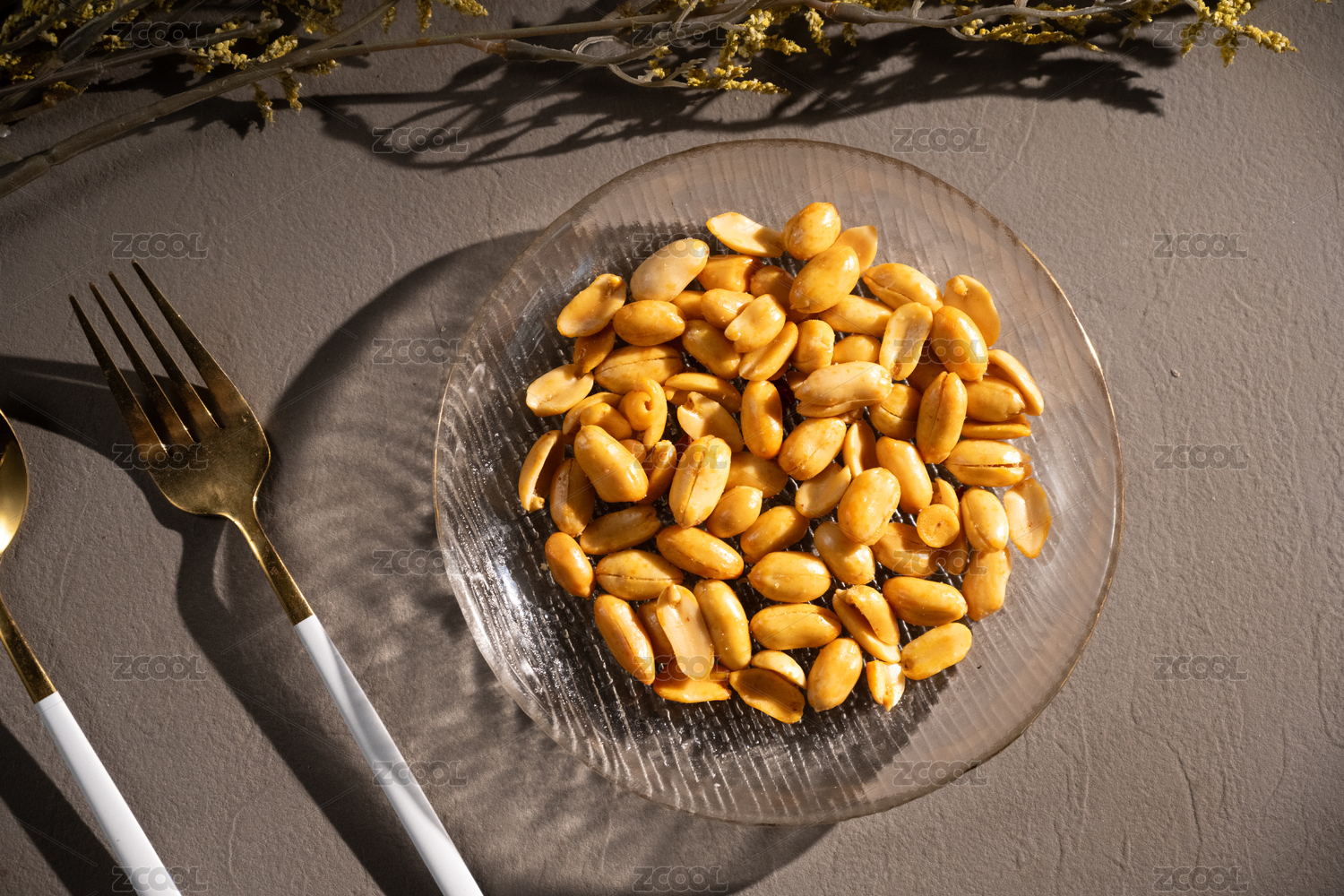 白底上放着一碟酒鬼花生米