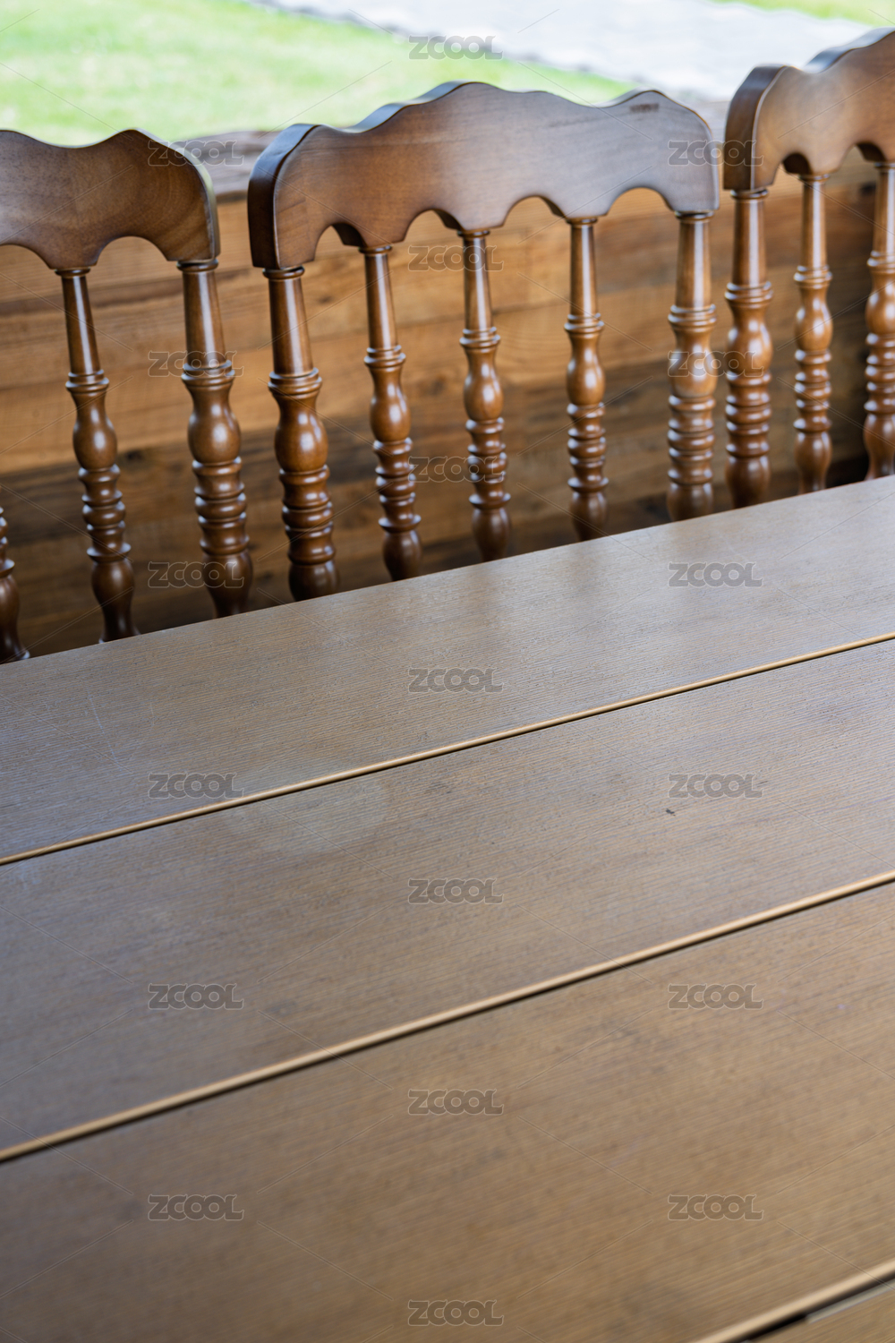 复古木制长椅的细节特写