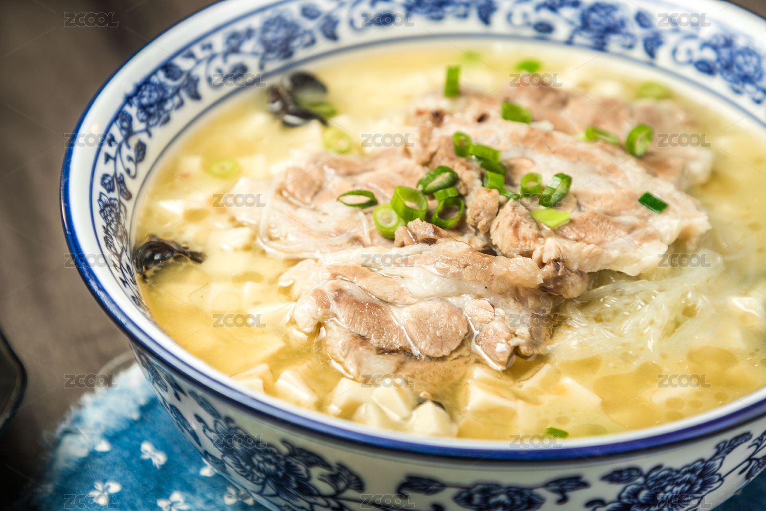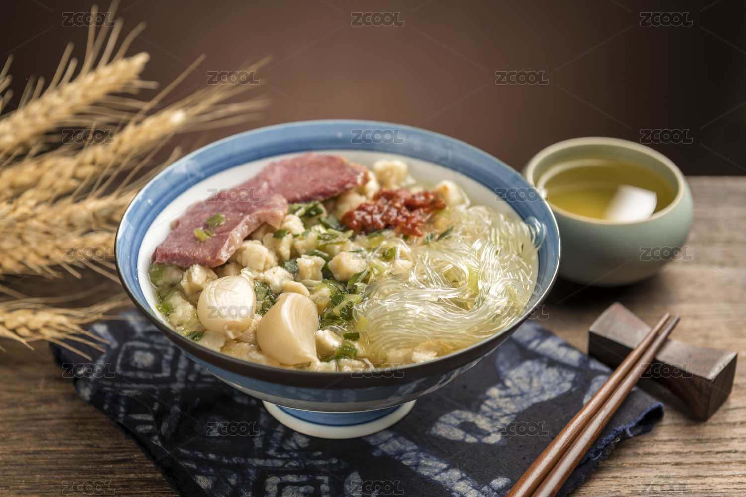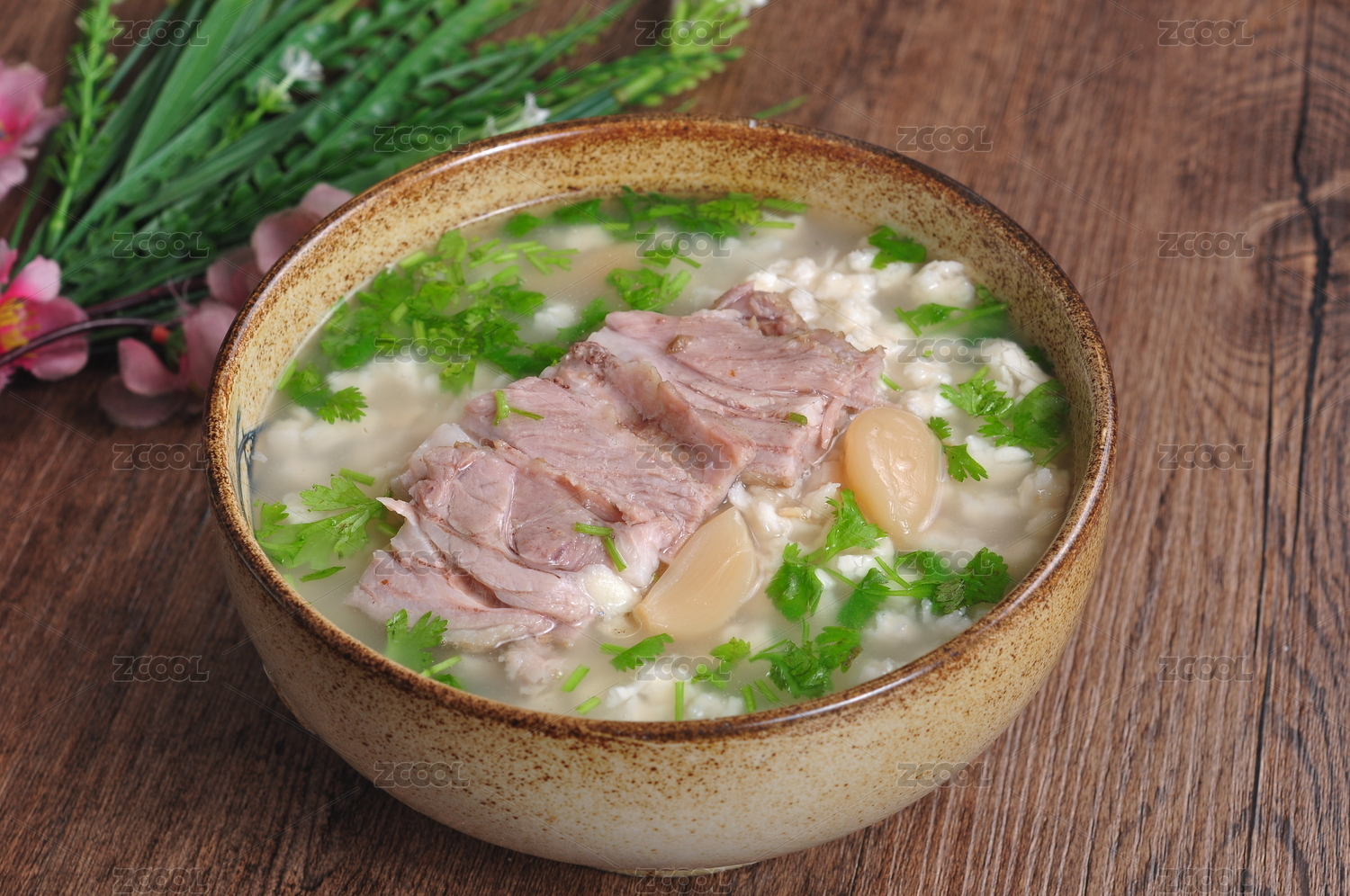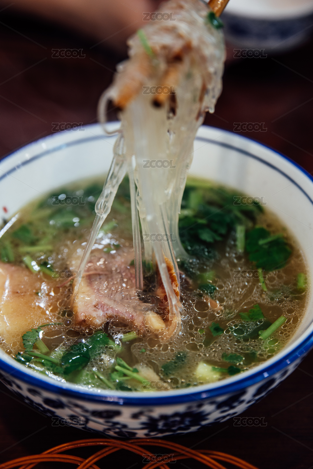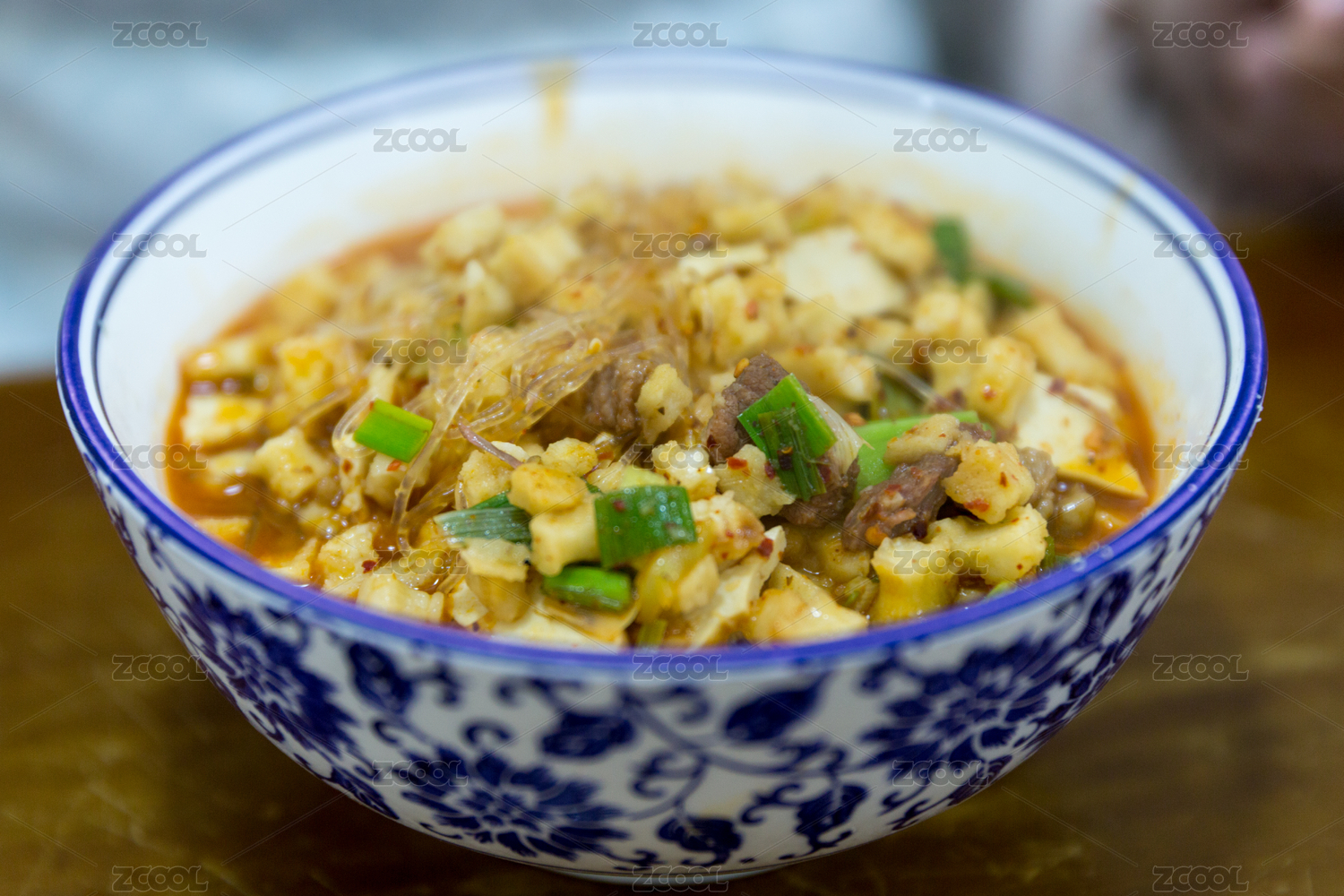 放在木桌上的一碗陕西西安美食羊肉泡馍