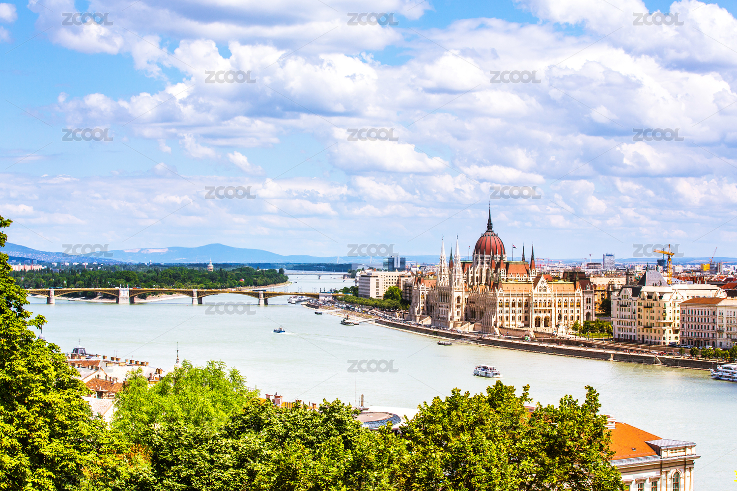 站在匈牙利布达佩斯渔夫堡上远眺多瑙河畔的风光