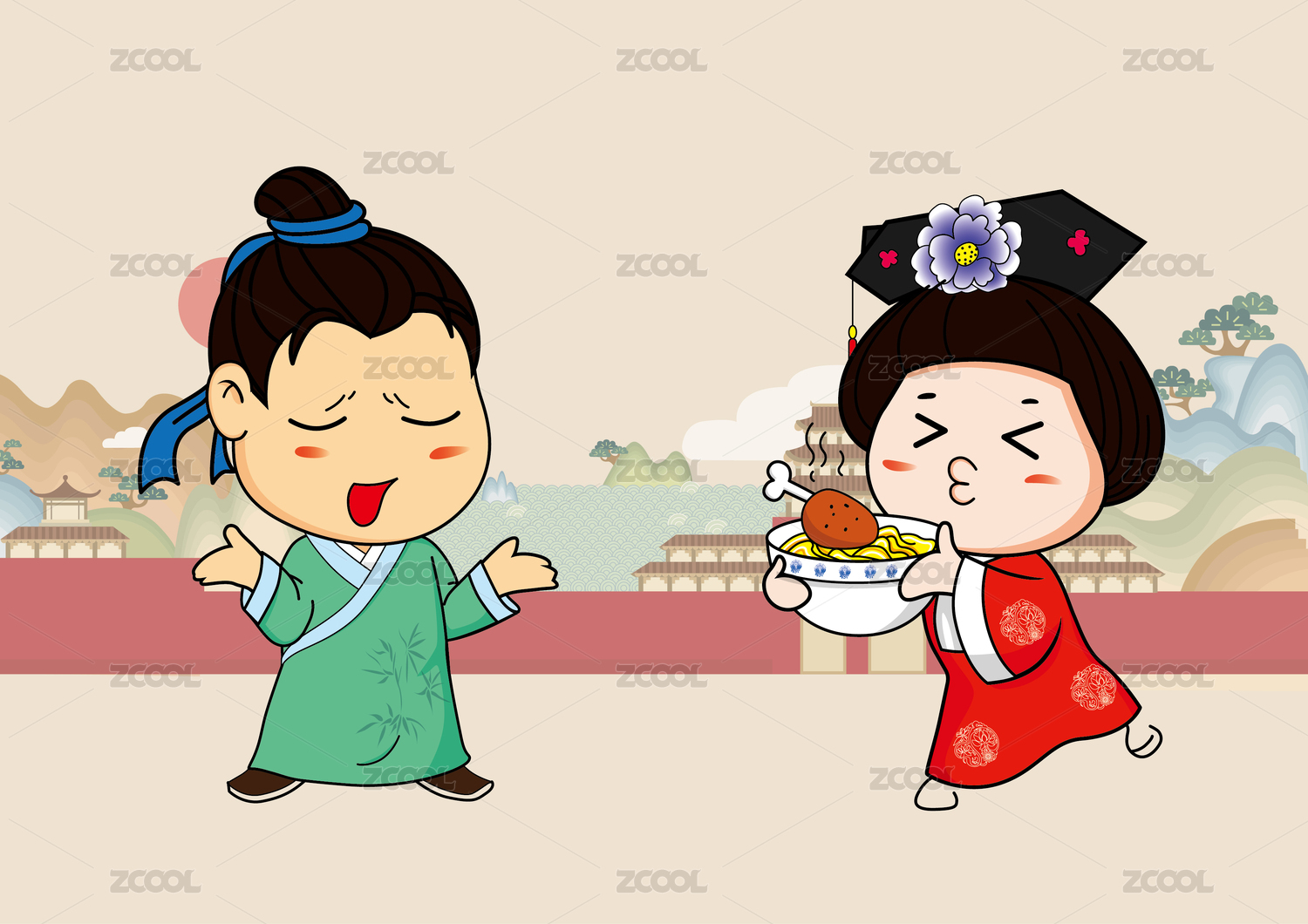 古装卡通人物插画