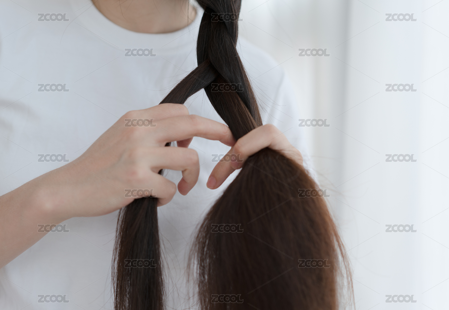 长发女人在扎辫子