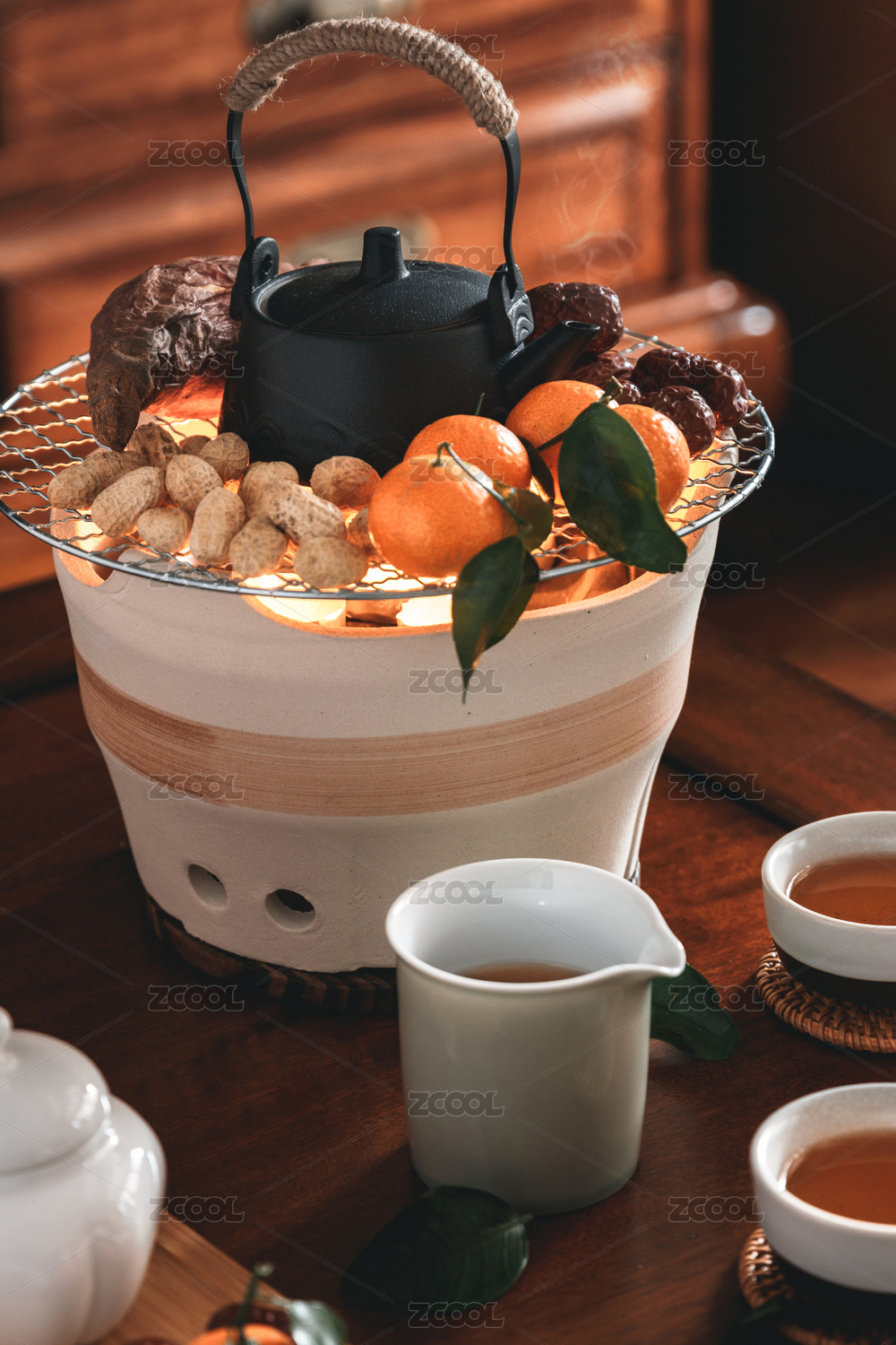冬季室内茶室围炉煮茶
