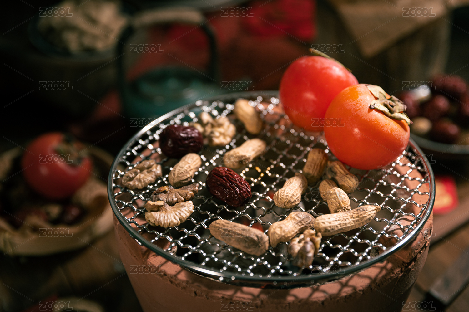 冬日围炉煮茶烤柿子