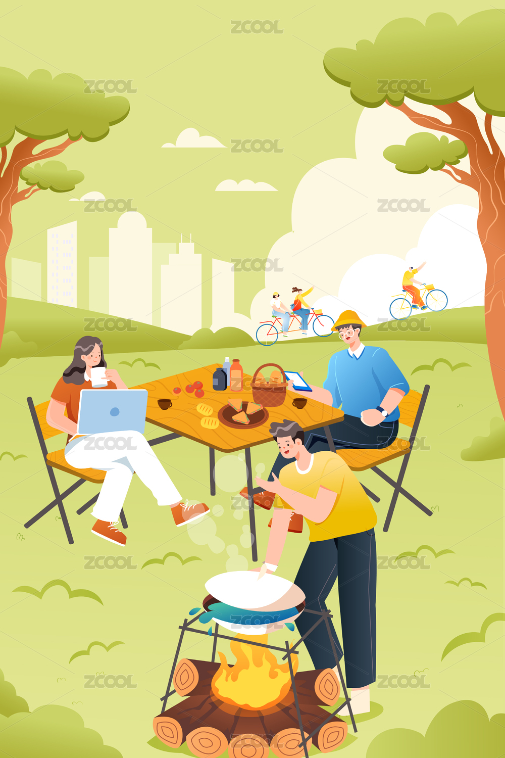 围炉煮酒休闲户外矢量插画