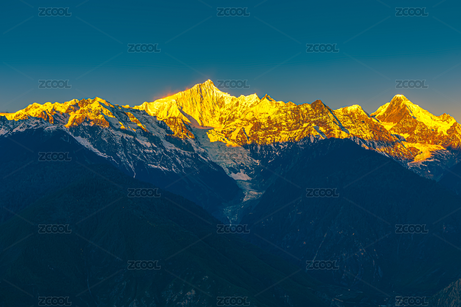 中国云南迪庆梅里雪山卡瓦格博峰日照金山