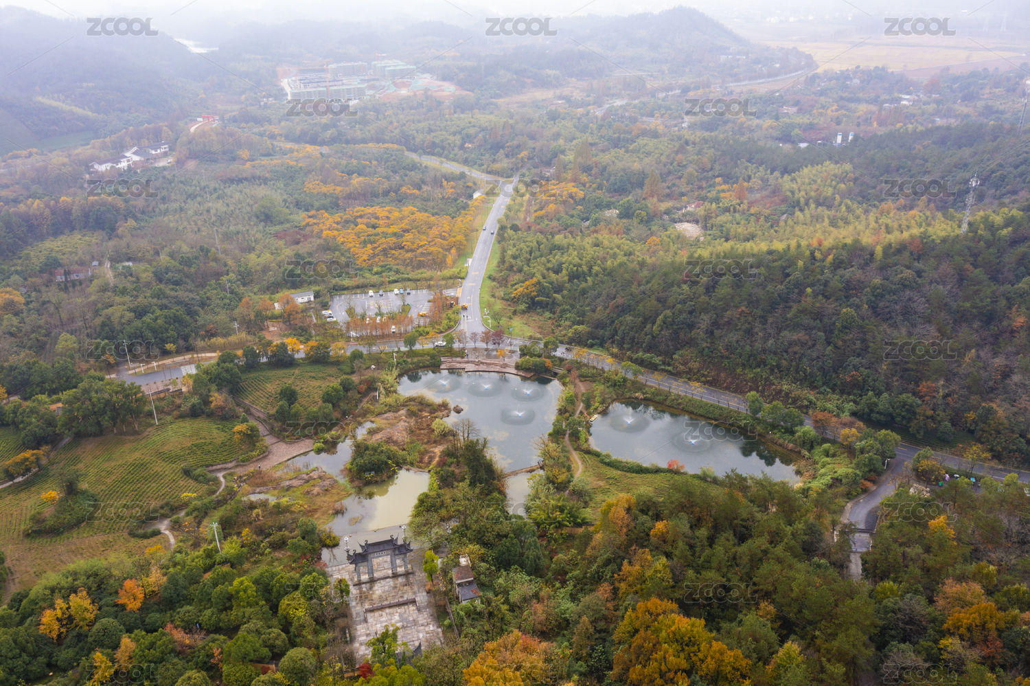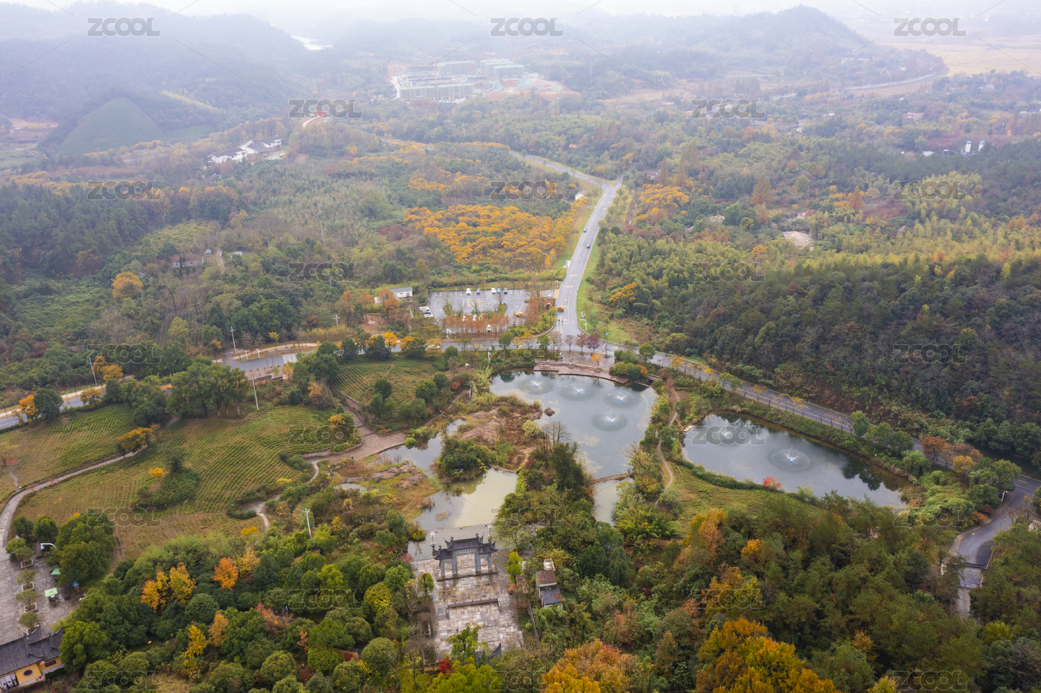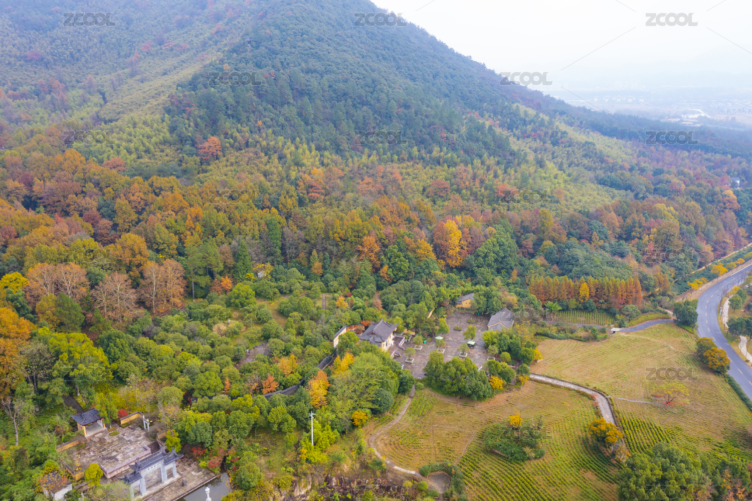 浙江省湖州市安吉灵峰寺秋色航拍