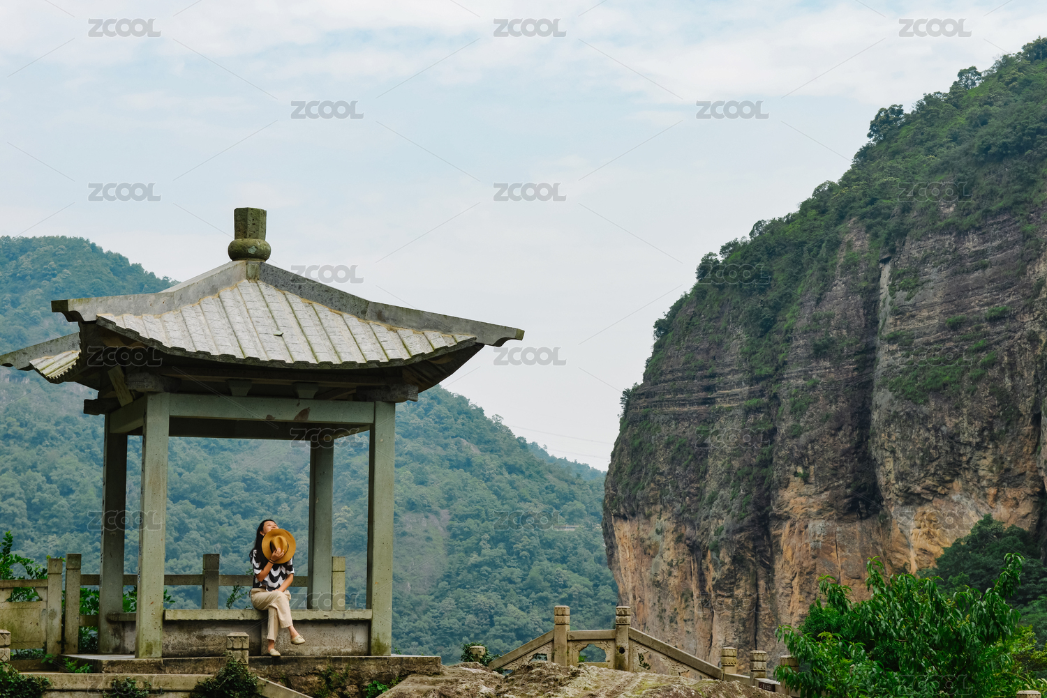 中国女性在浙江乐清雁荡山灵峰景区东瑶台