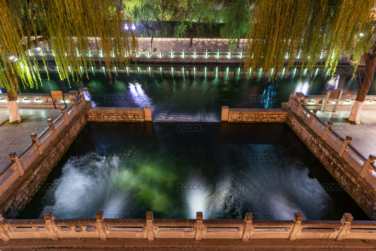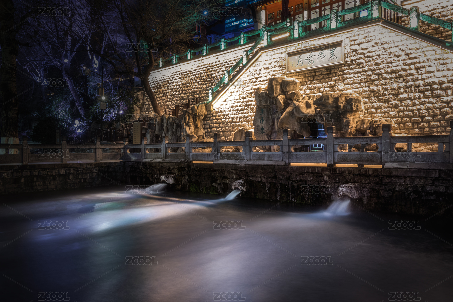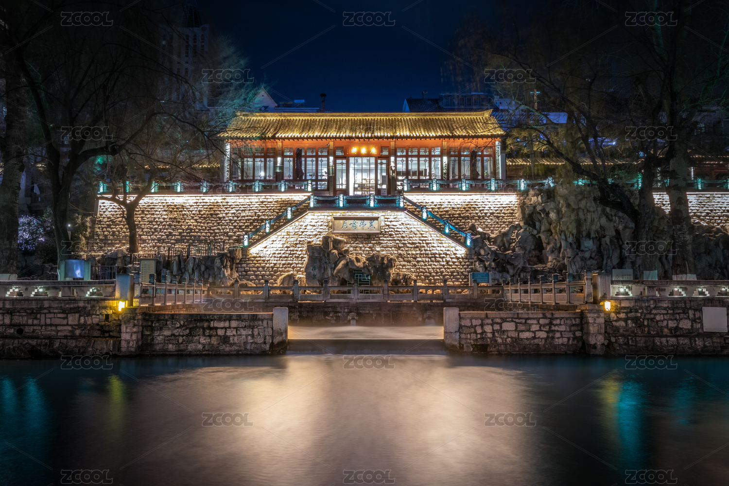 冬季夜晚中国山东省济南市黑虎泉与解放阁