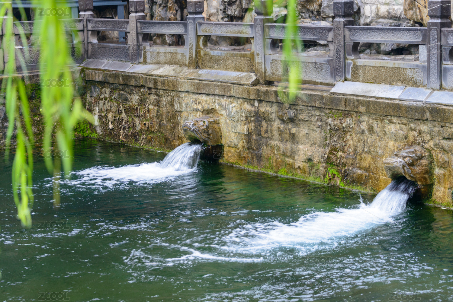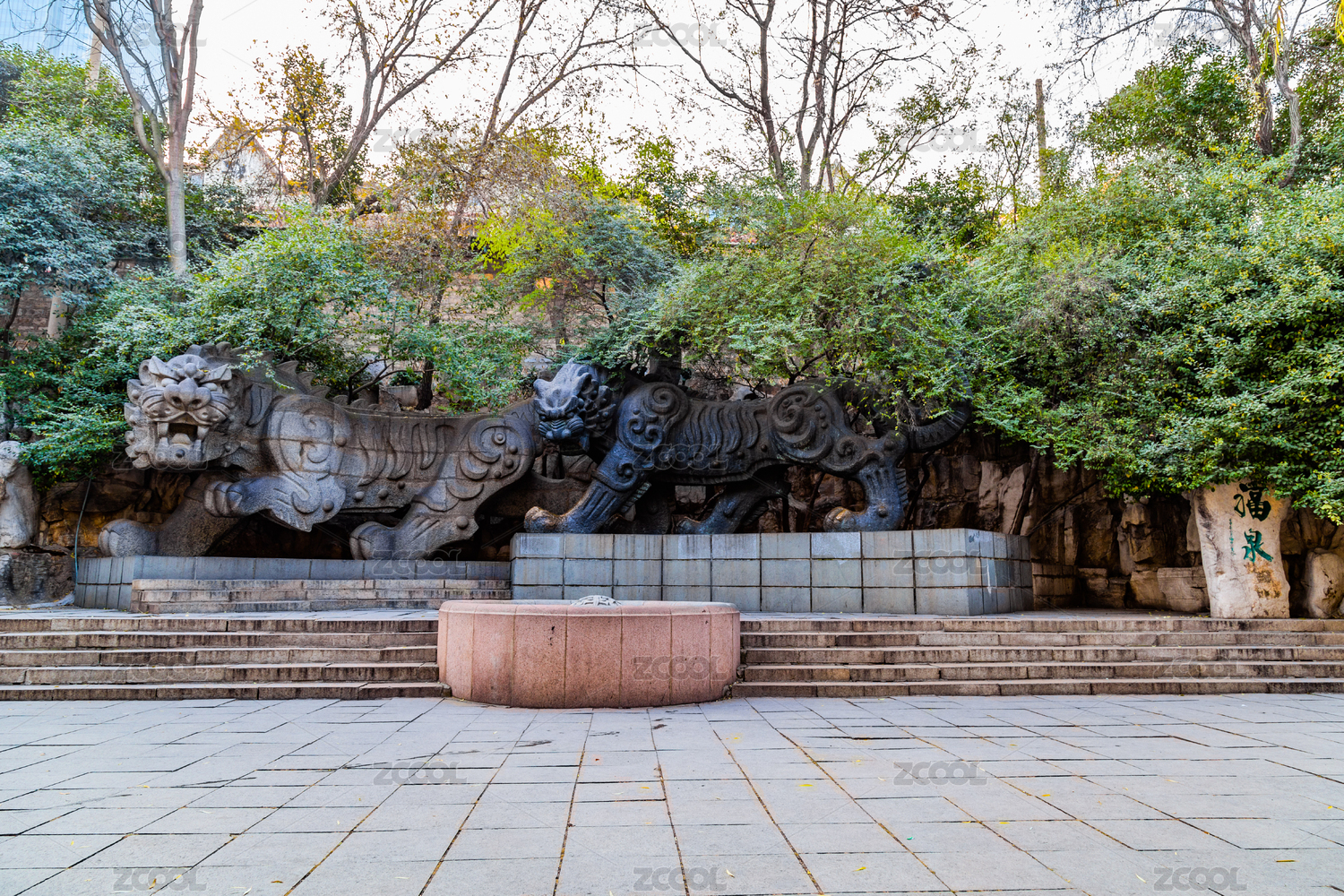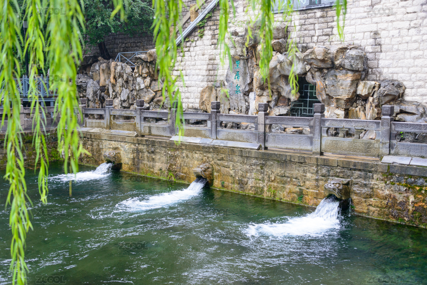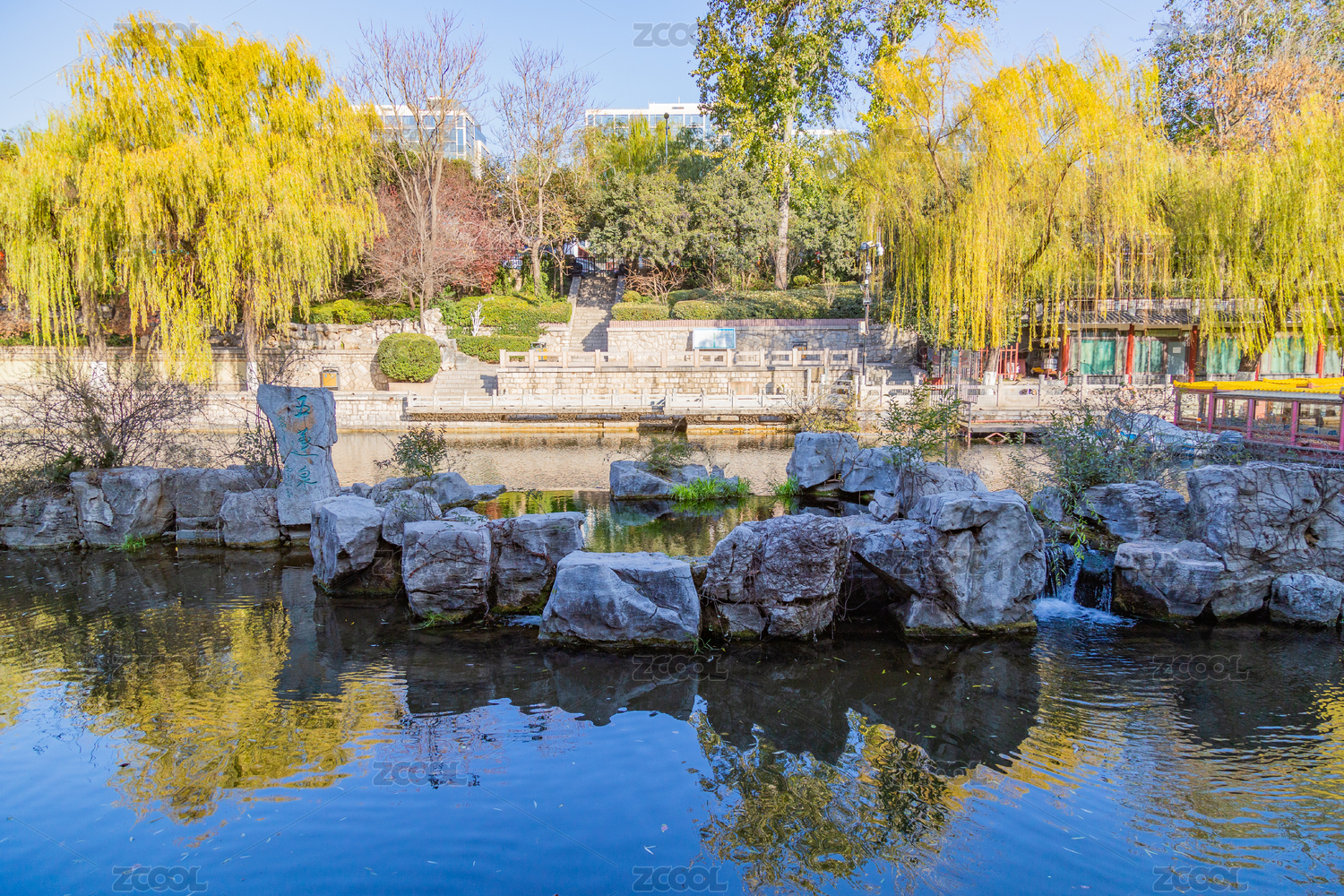 冬季夜晚中国山东省济南市黑虎泉与解放阁