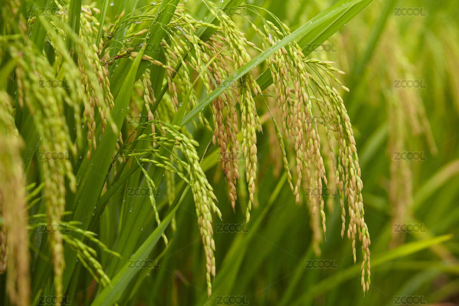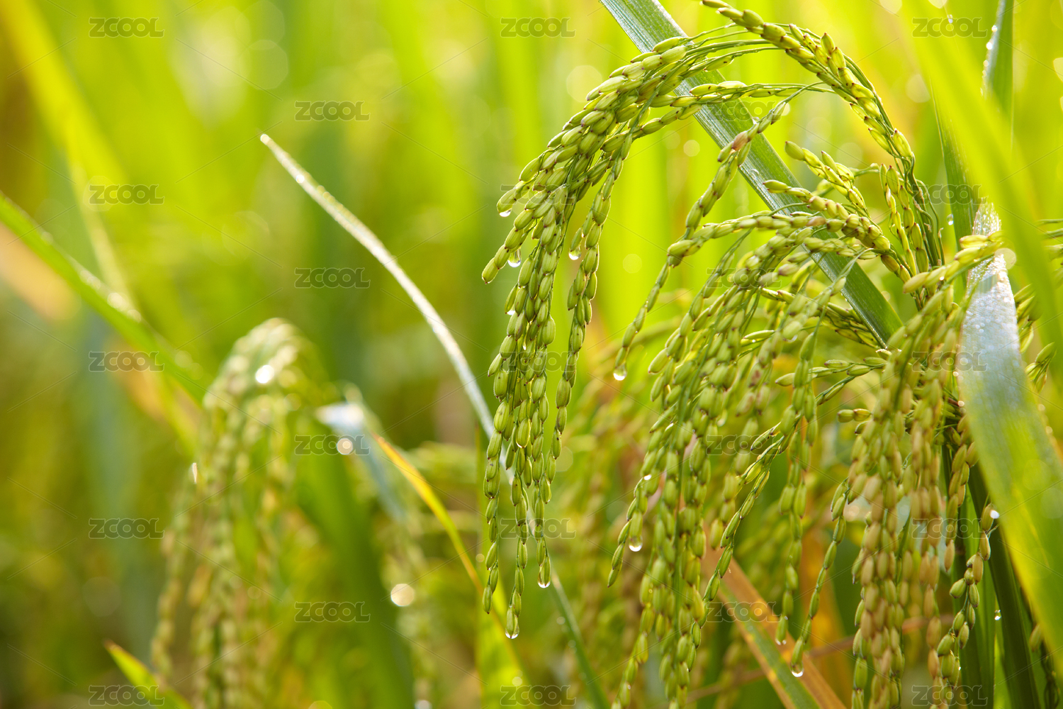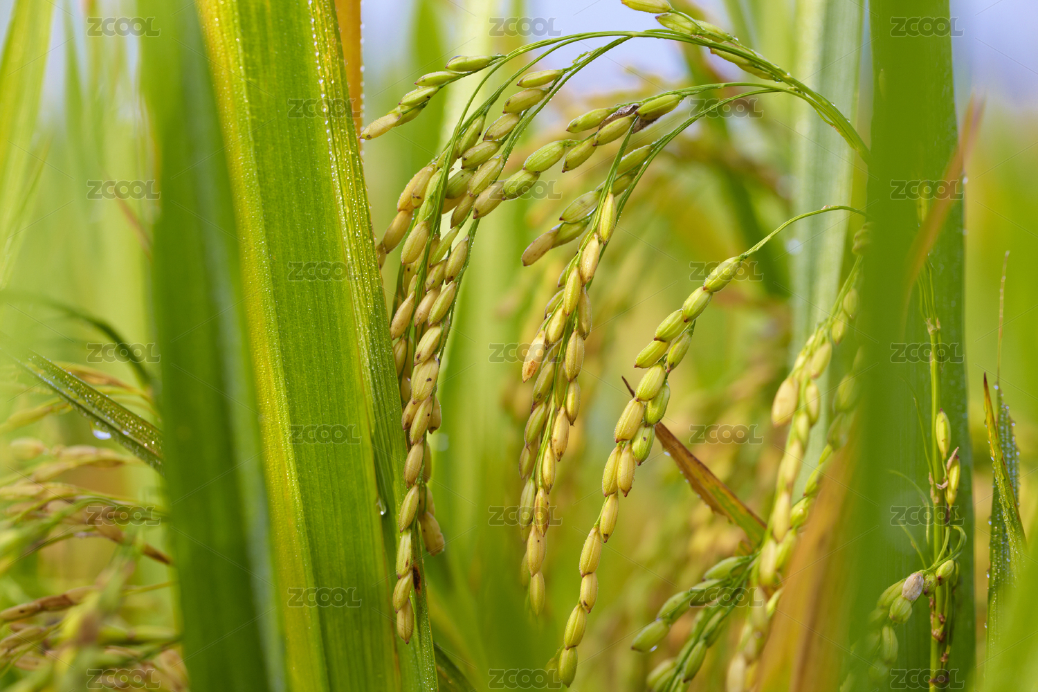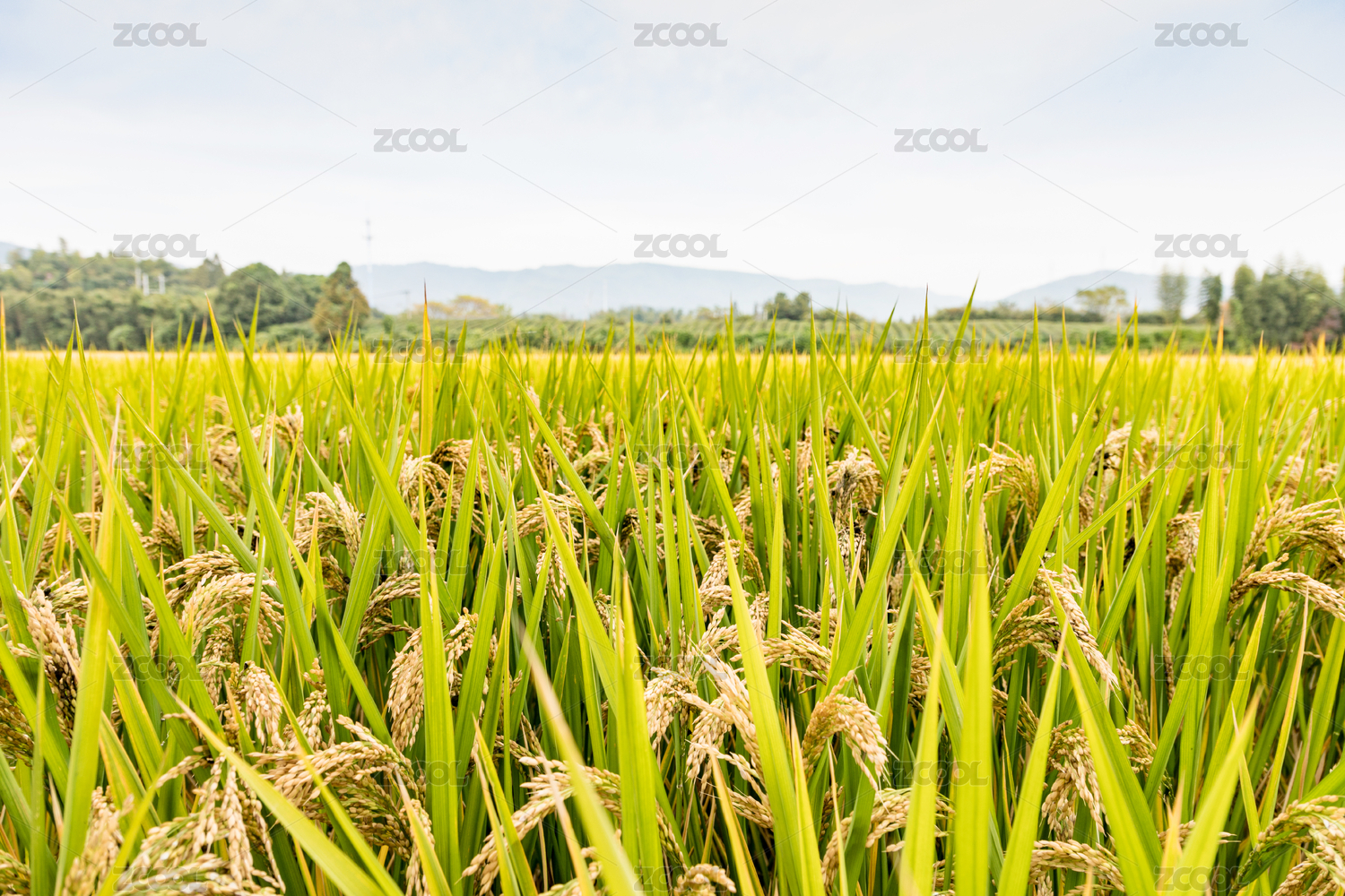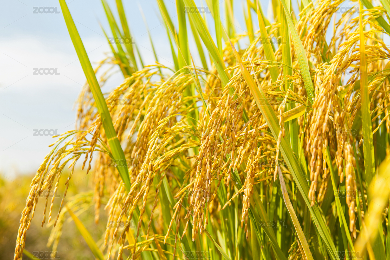 在等待收割的稻田上,一双收捧着一把颗粒饱满的水稻穗