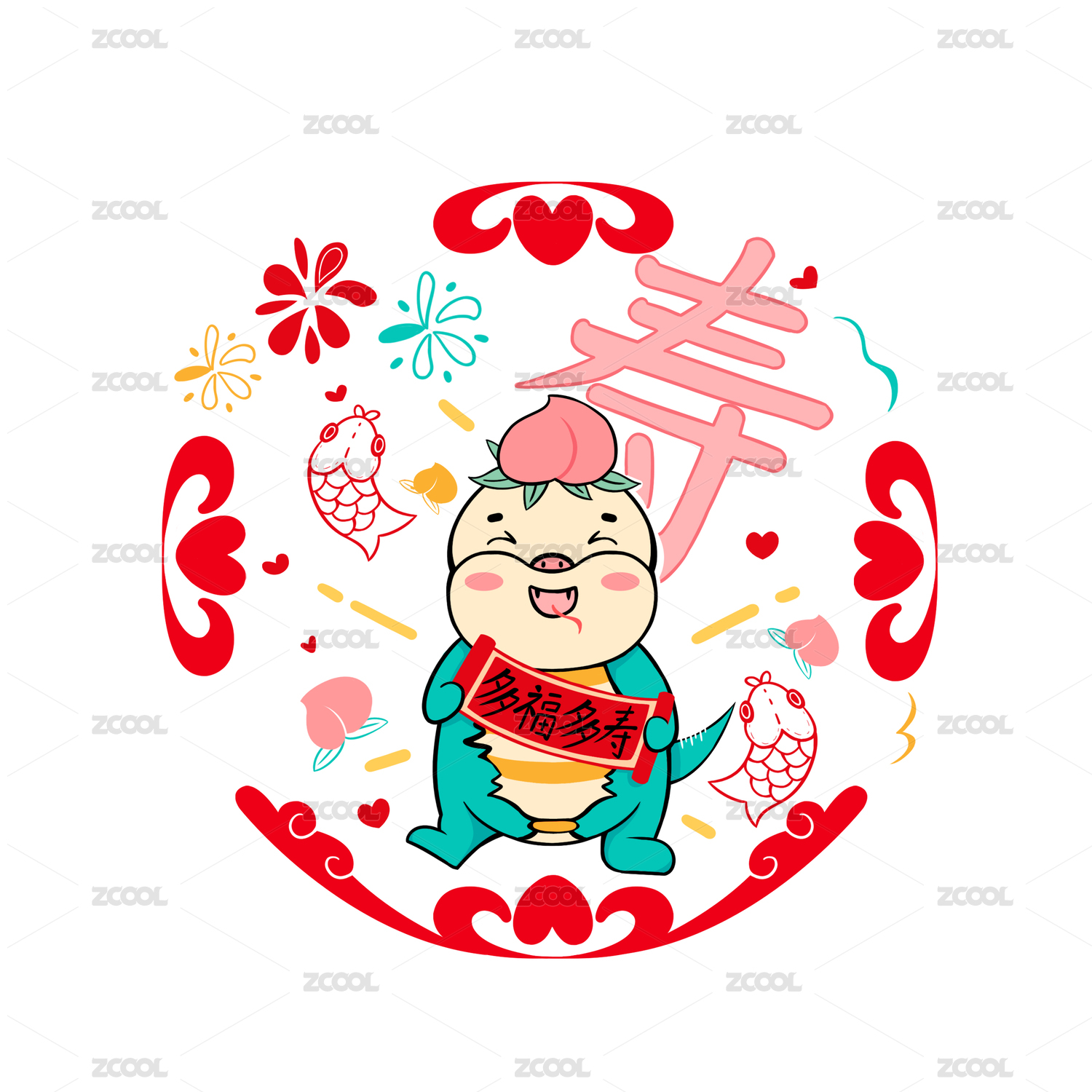 插画剪纸端午节传统元素窗花粽子波纹龙舟