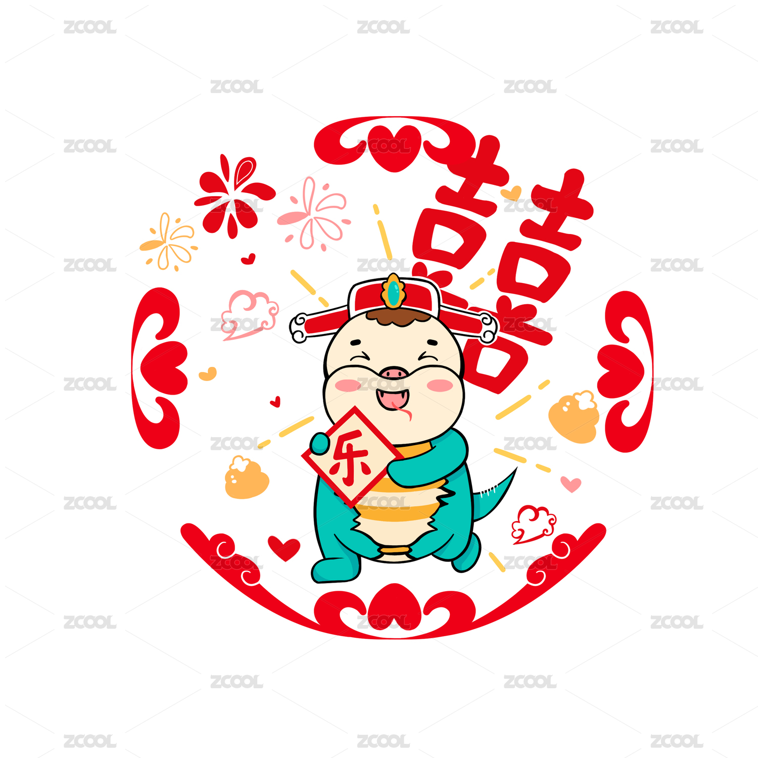 卡通手绘生肖马动物剪纸窗花马年元素插画