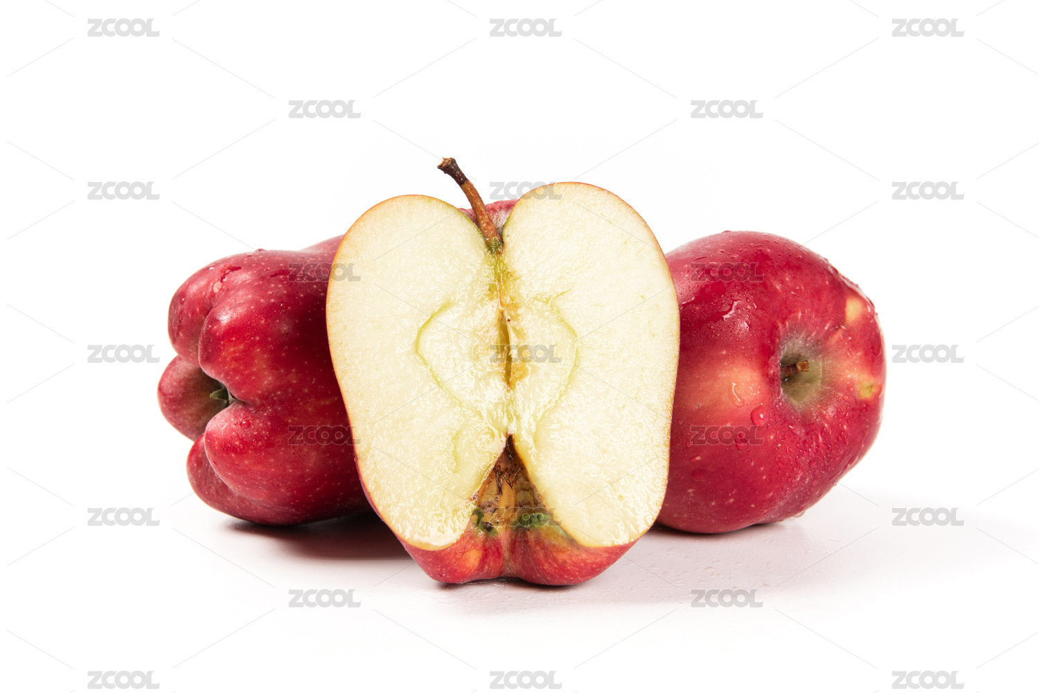 白底上切开的蛇果苹果