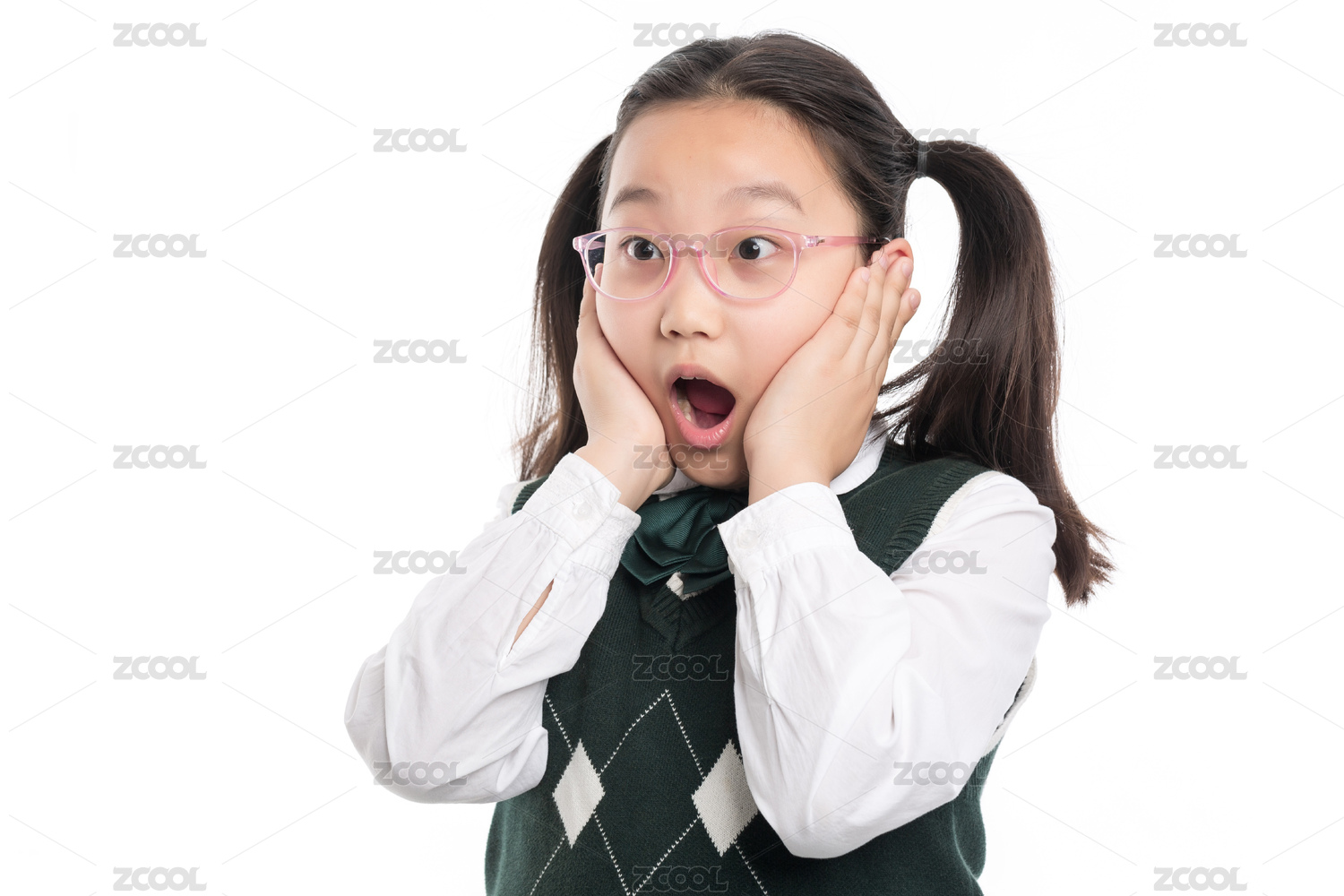 小学生双手捂脸惊讶的长大了嘴巴