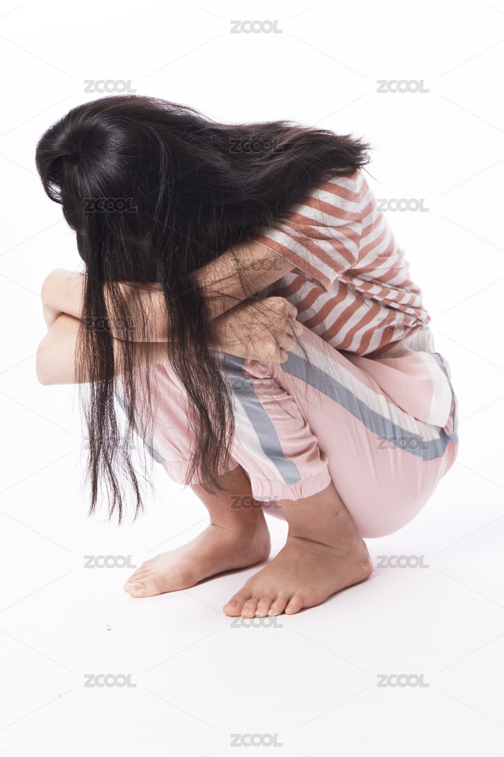 蹲着捂脸痛苦的女童