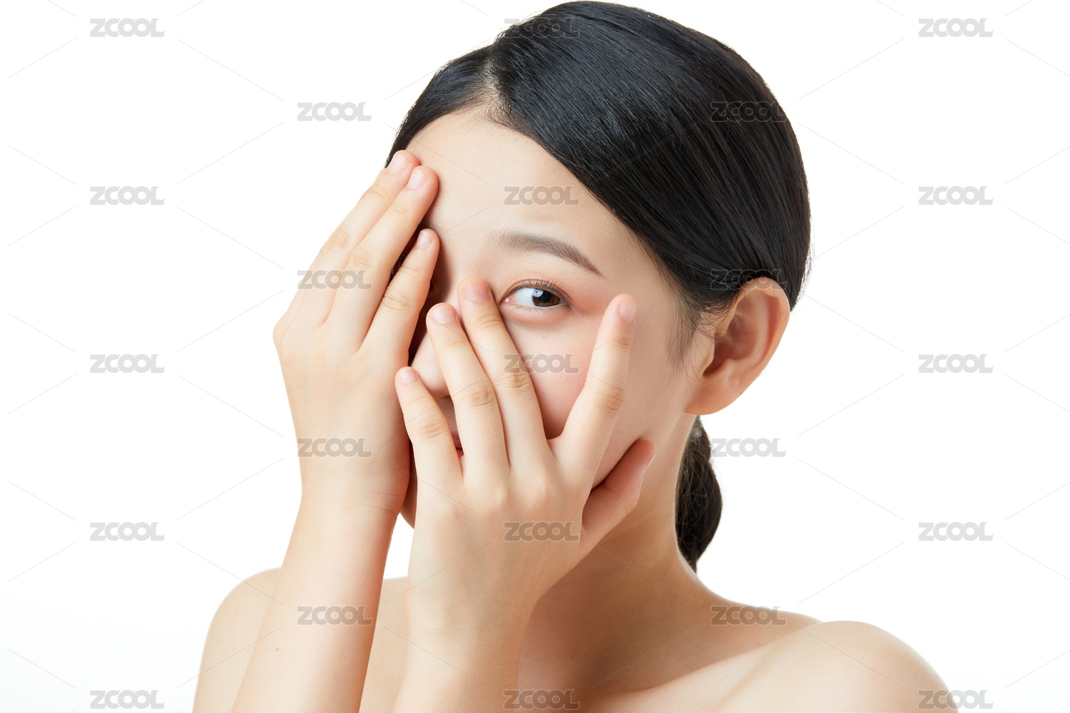 俏皮女性捂脸挡住眼睛