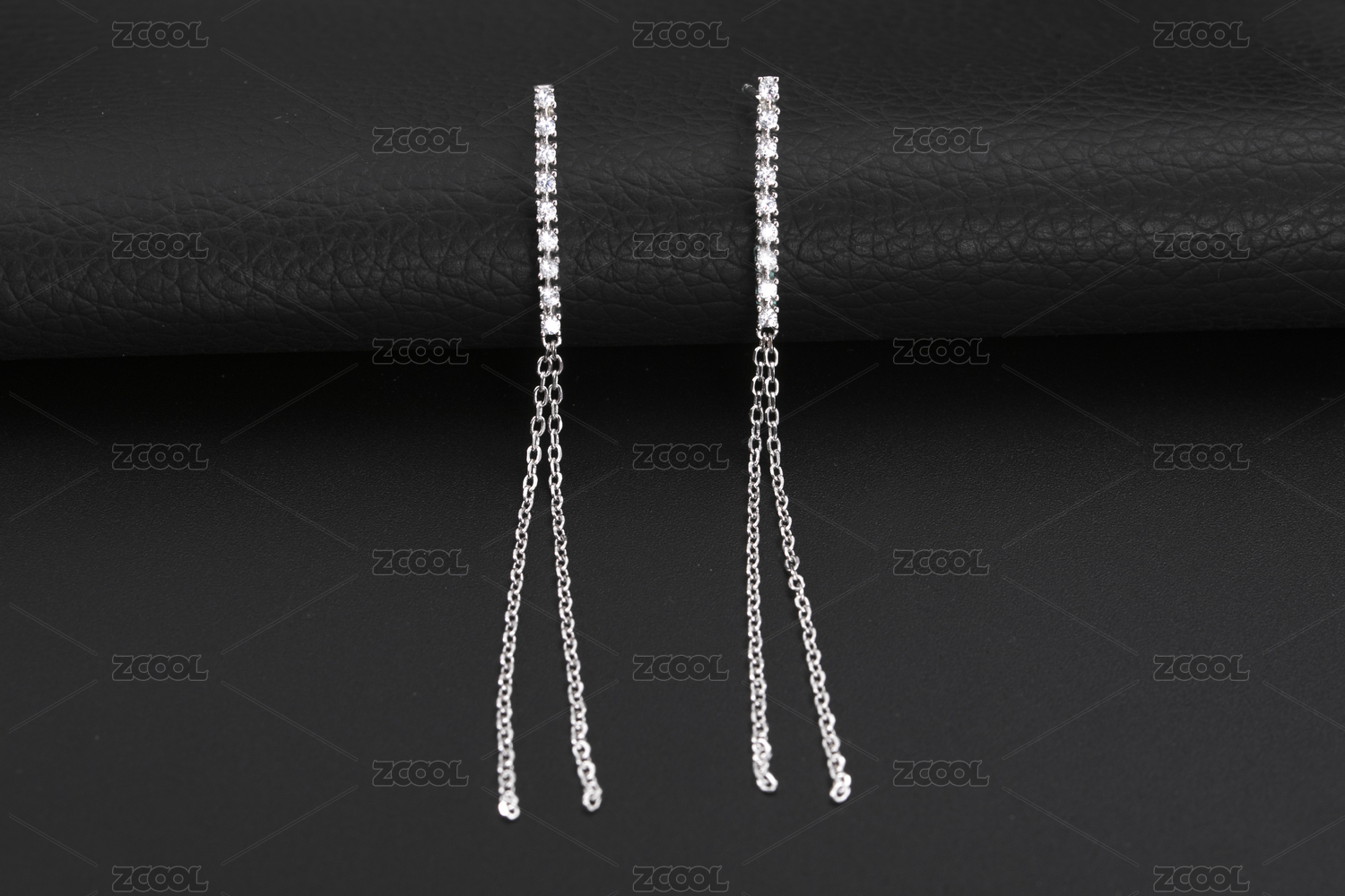 925银镶钻石流苏耳环饰品在黑色背景展示