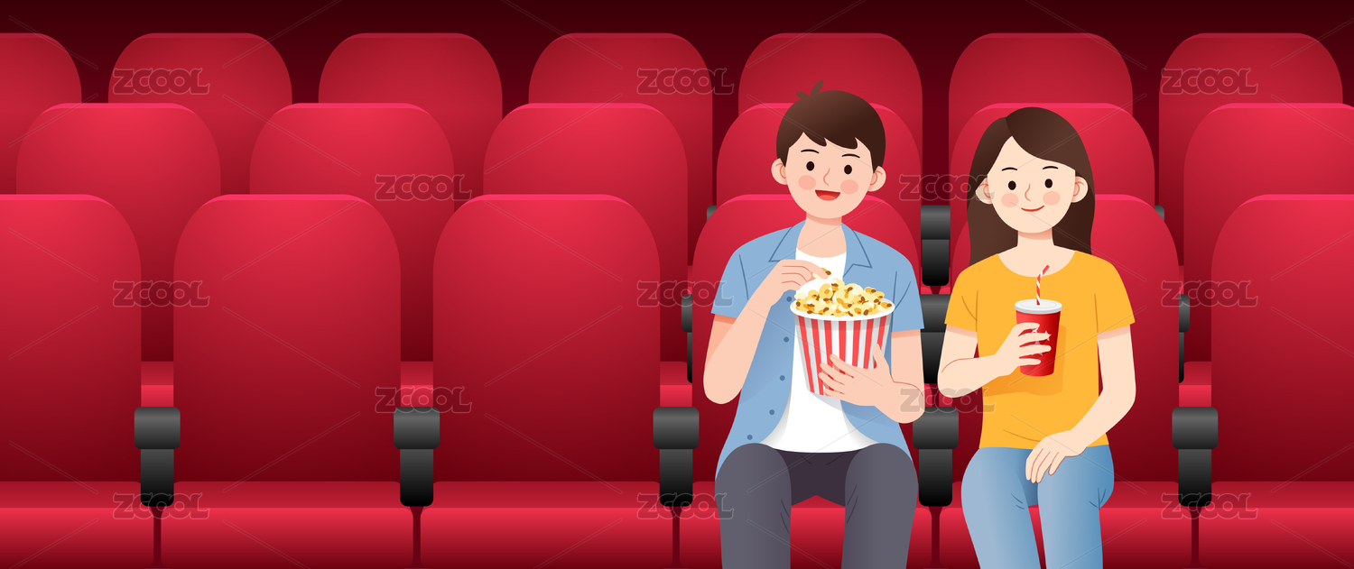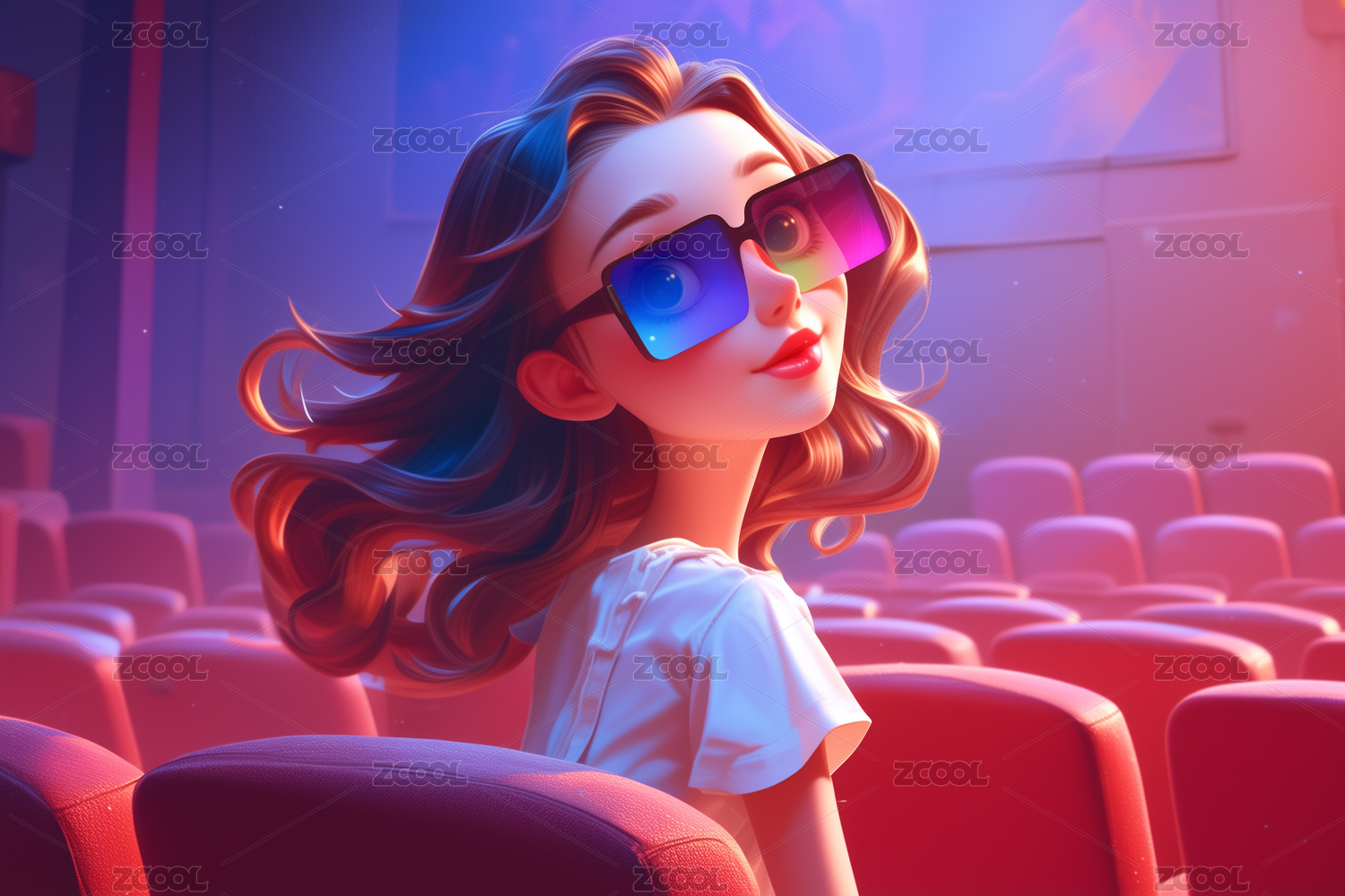 一个人看电影的戴墨镜3D眼镜女孩人物场景