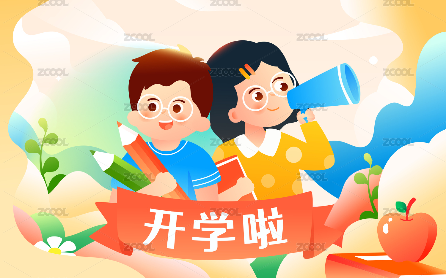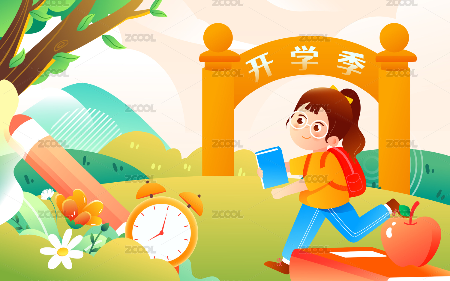 新学期开学季学生返校上学学习教育培训插画