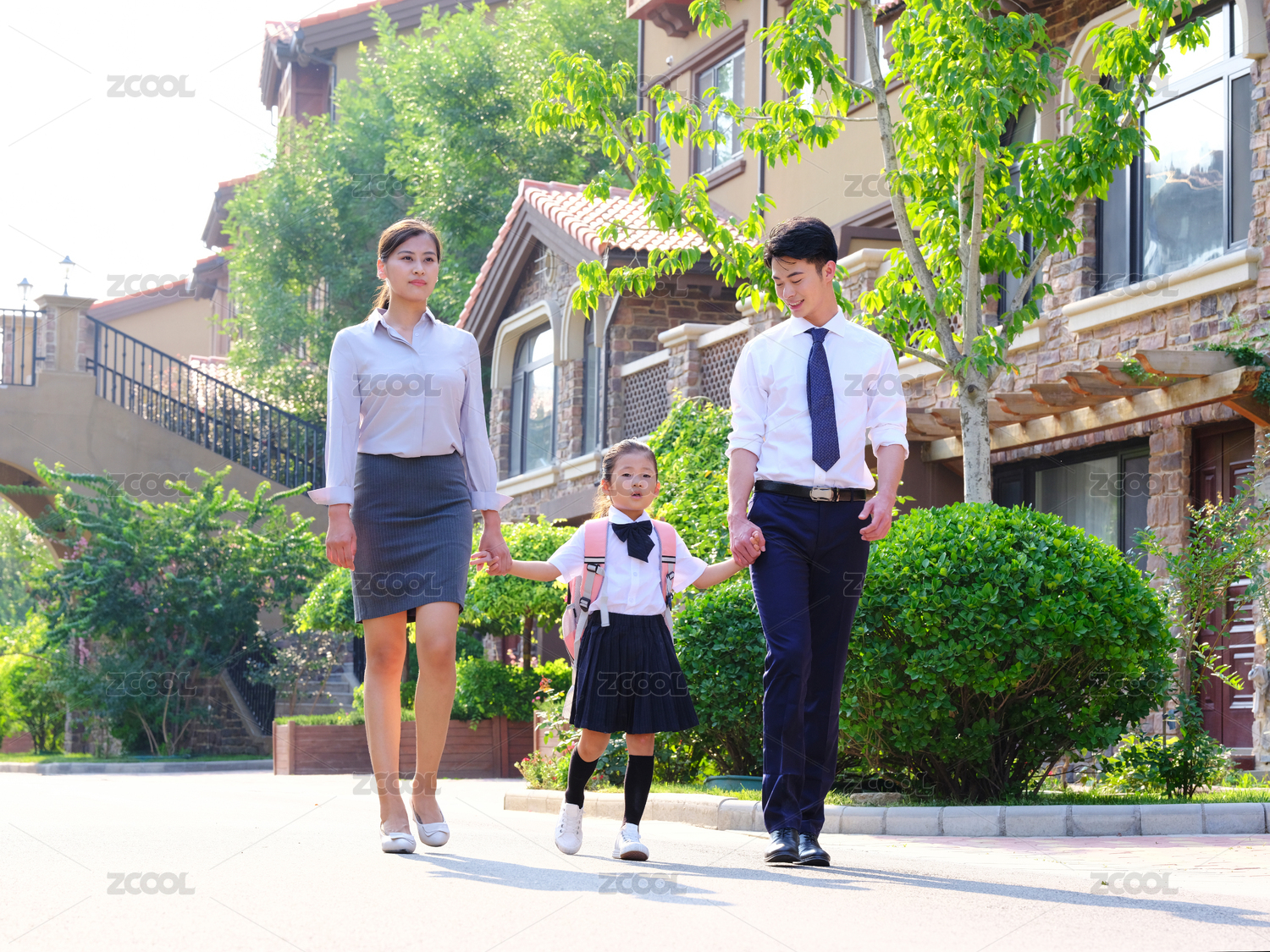 年轻父母送孩子上学