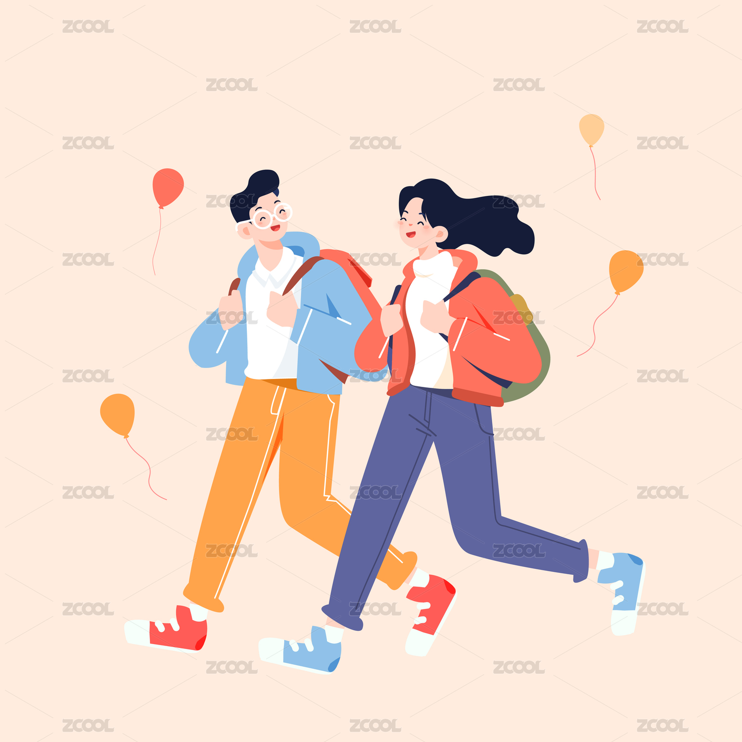 新学期学生们上学欢迎新生 可爱风格开学季插画