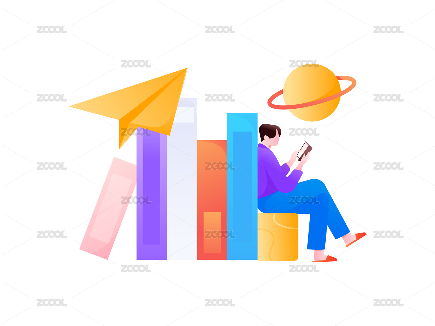 读书上学的人物扁平矢量概念运营插画