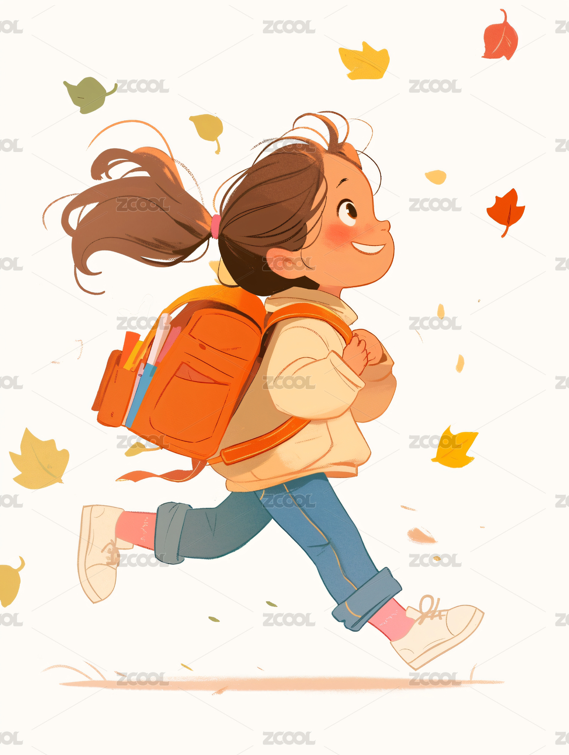 上学路上的儿童插画