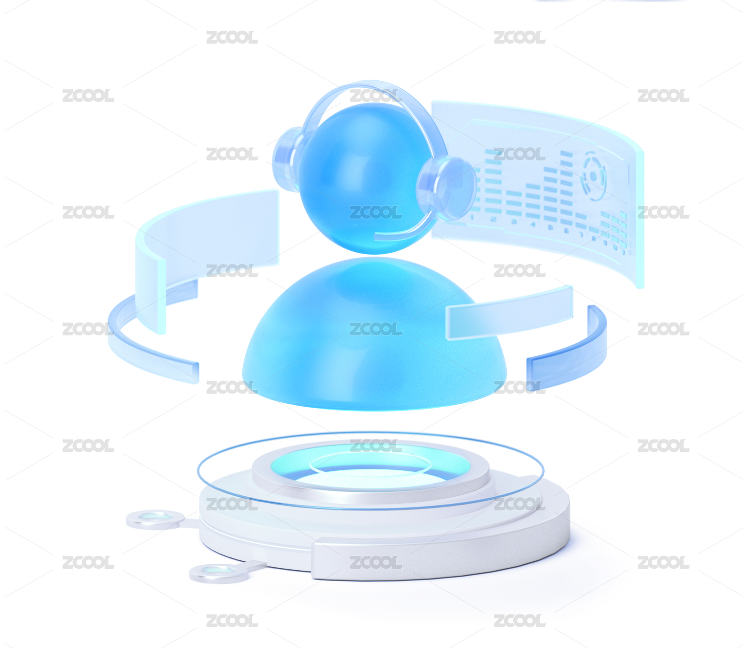 科技蓝浅色圆环用户服务客服3D渲染场景