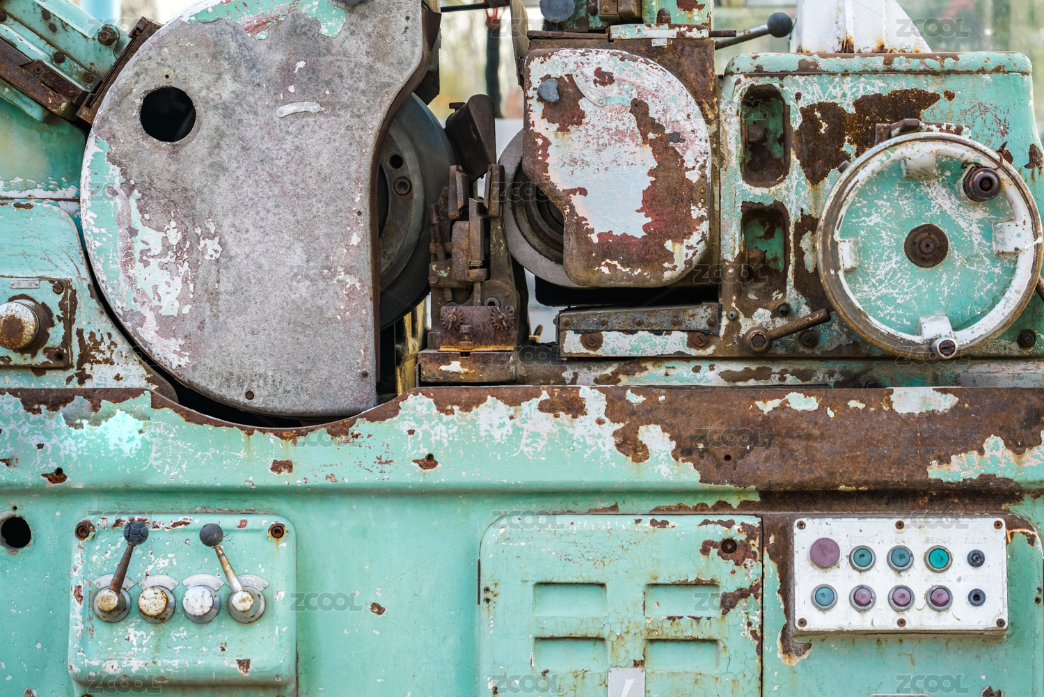 重工业时代废弃生锈的机床操作面板