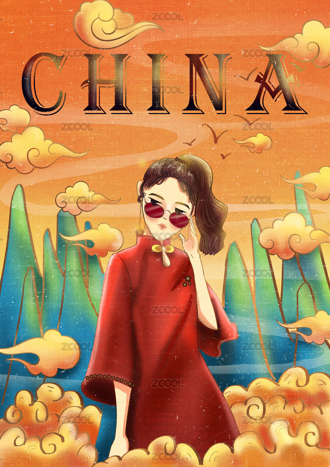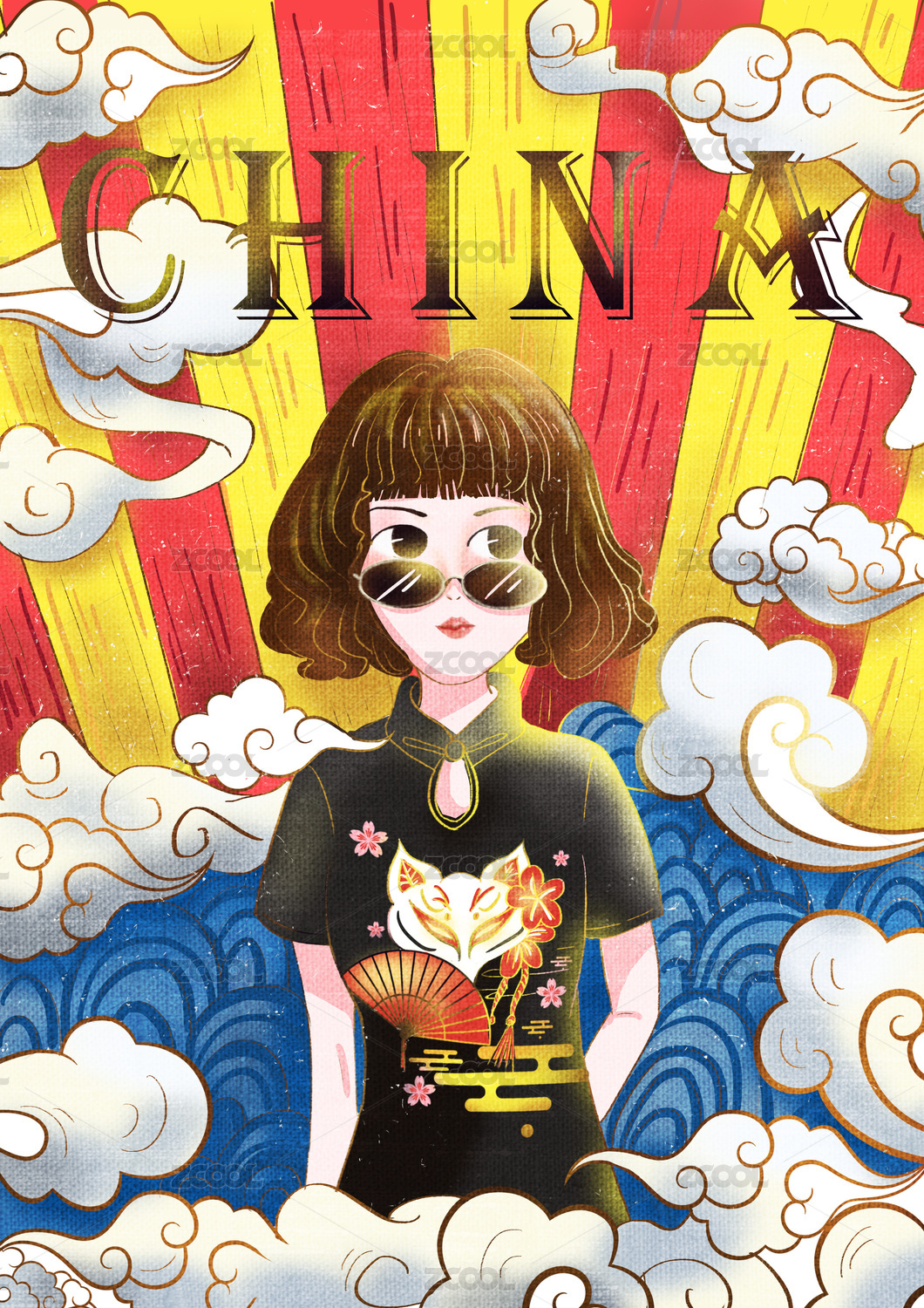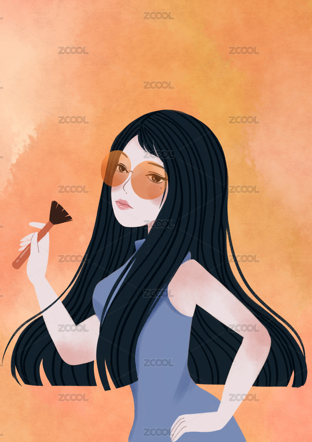 双色唯美个性露背珍珠女孩扁平矢量插画