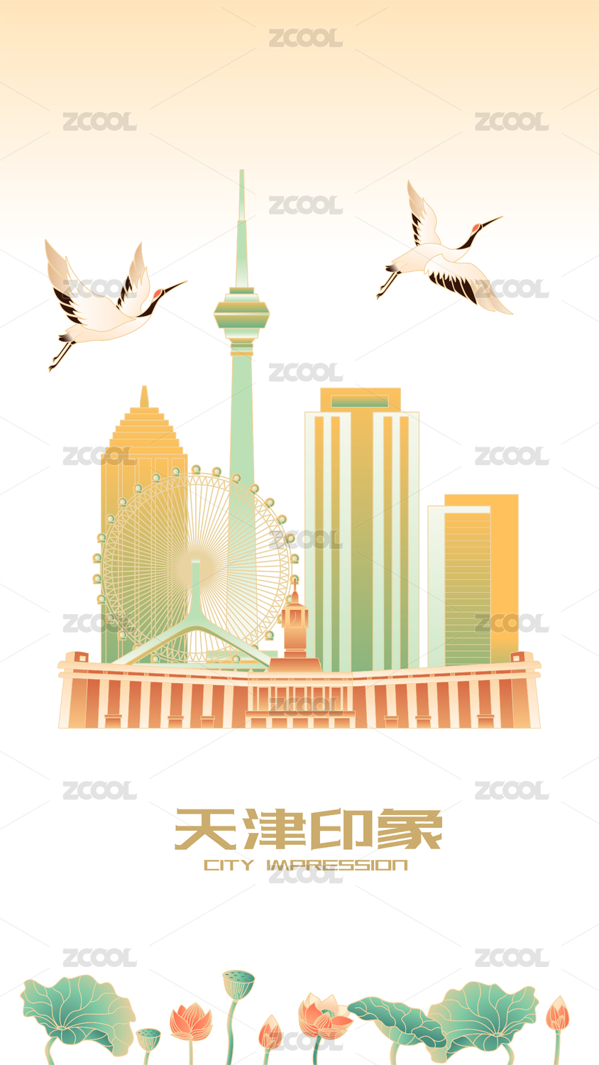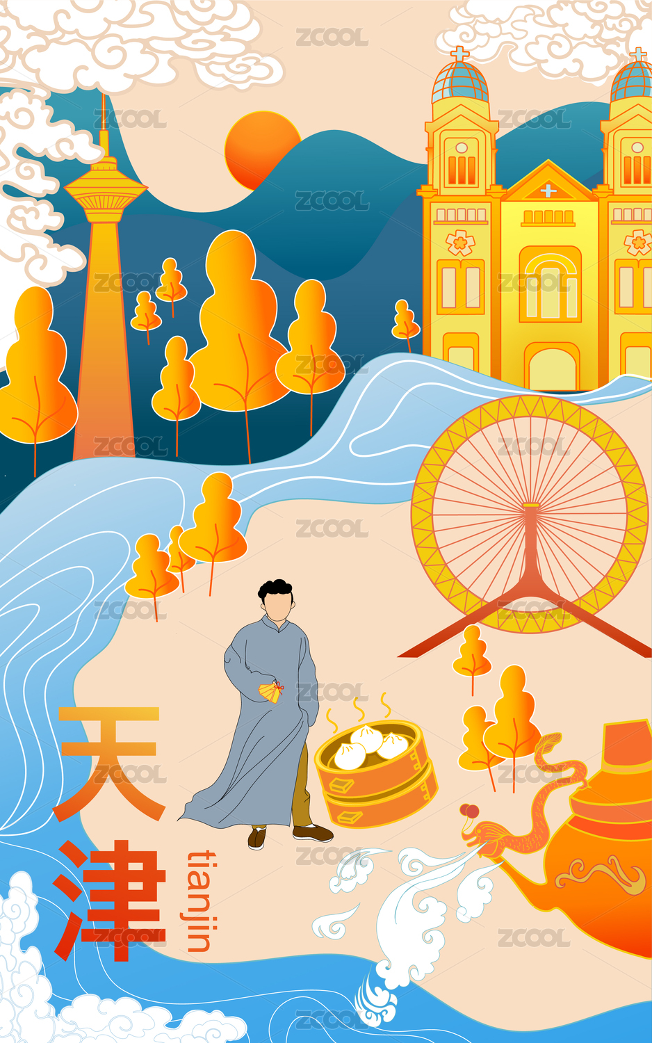 天津城市旅游地标插画设计