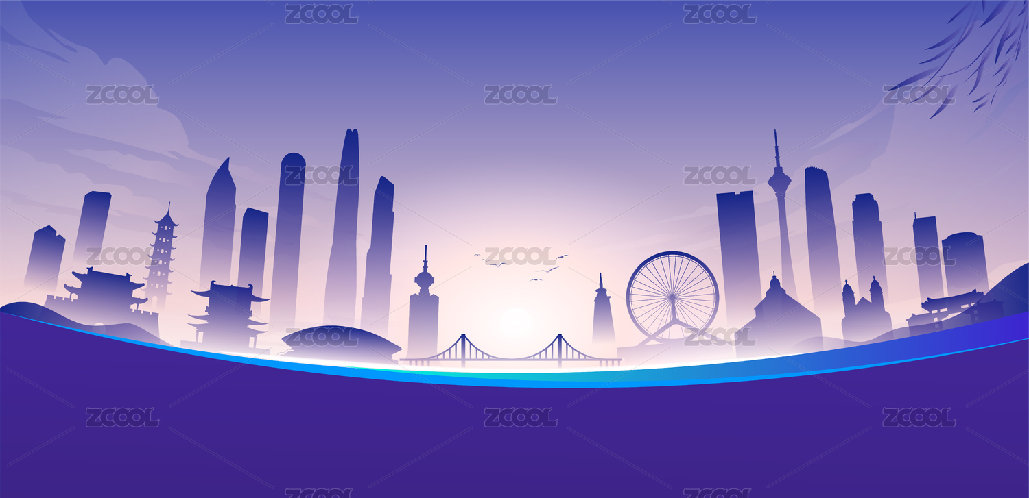 天津城市天际线矢量地标建筑群插画