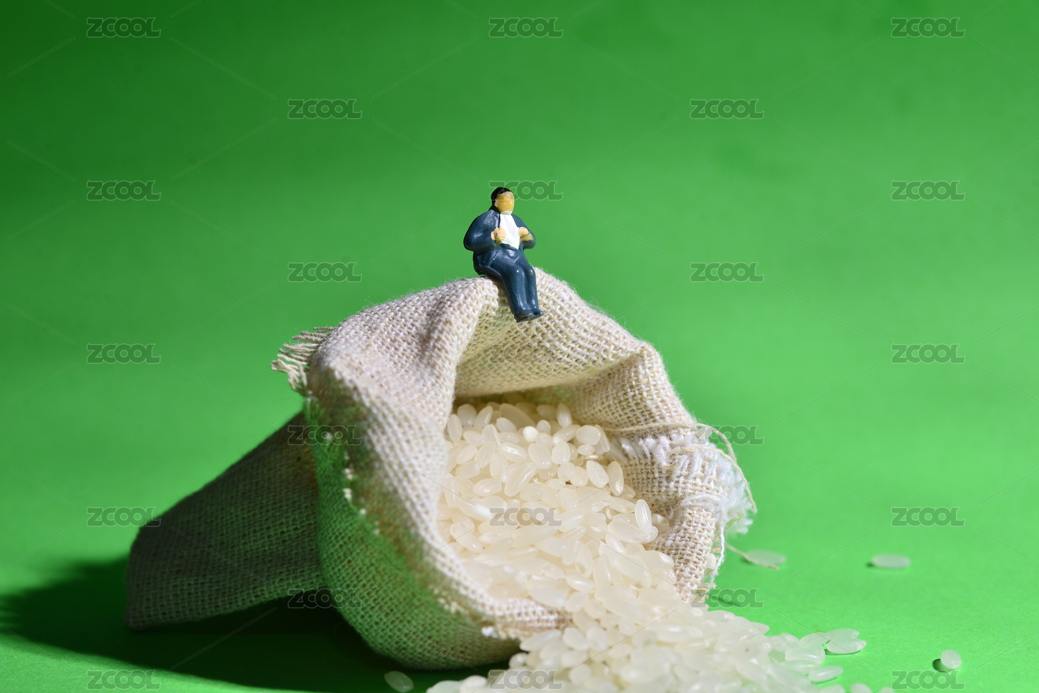 彩色背景上的粮食和小人,关于浪费思考